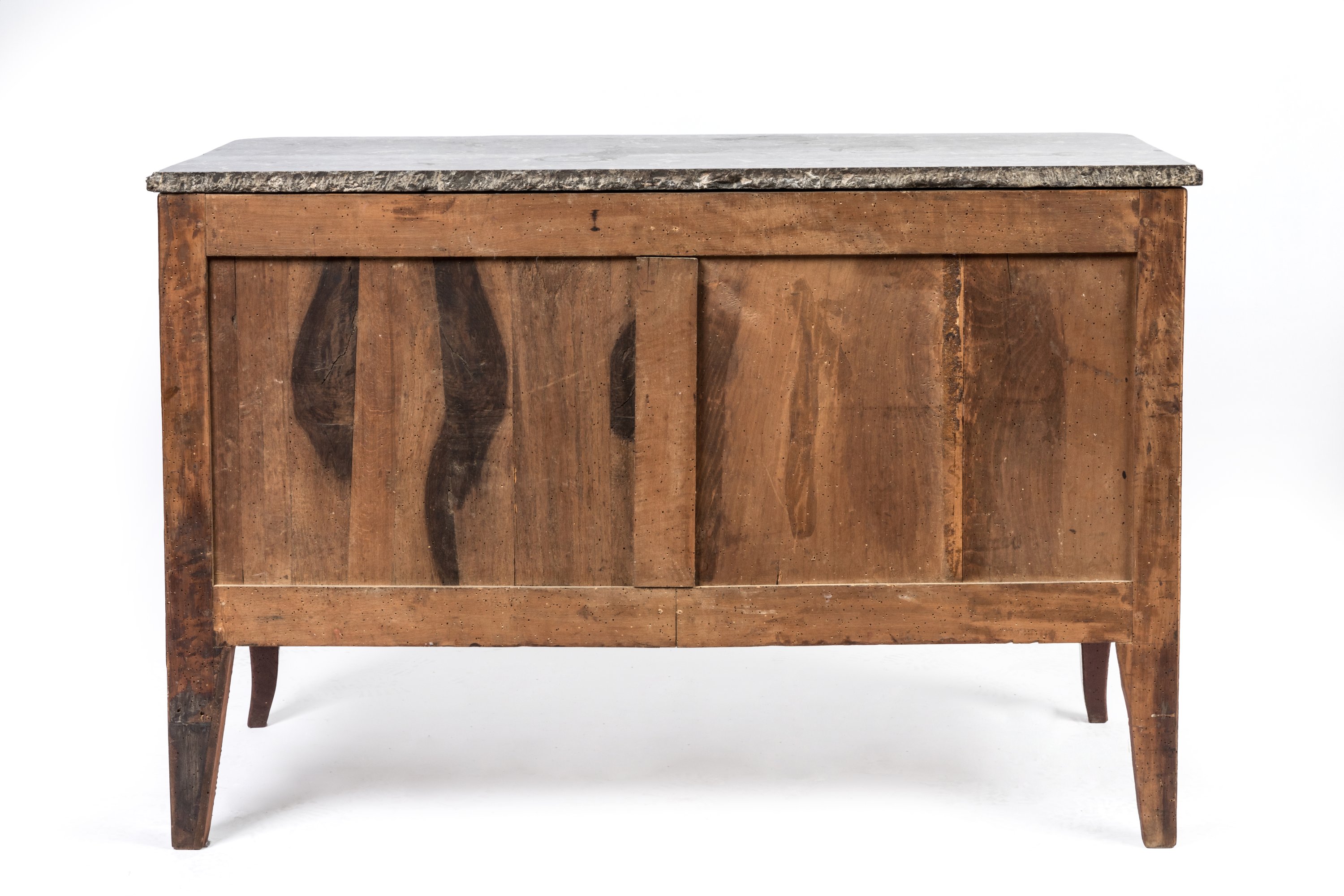Louis XV-Louis XVI Transition Period. An amaranth and rosewood marquetry commode. Grey marble top.