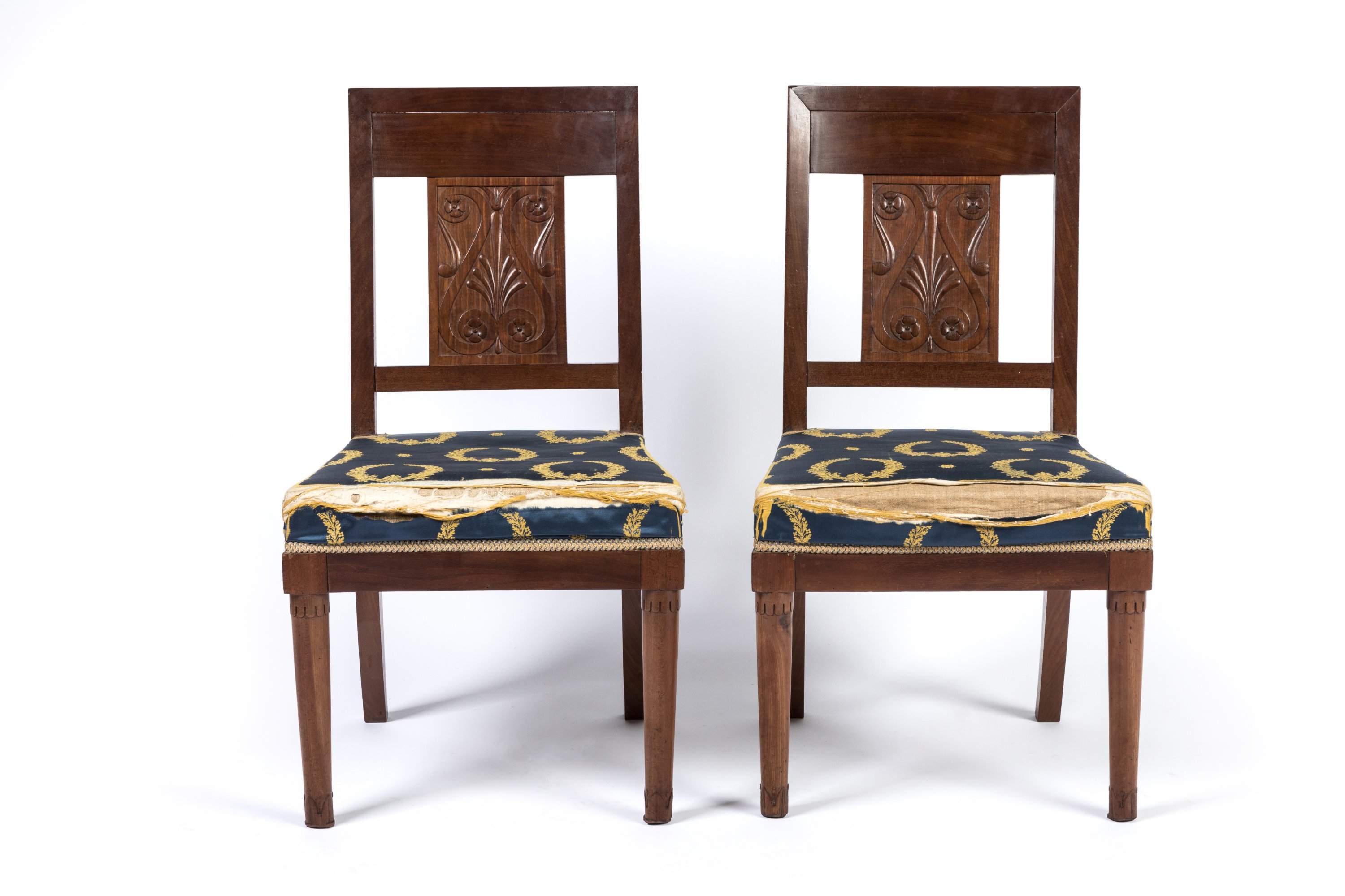 Ca. 1800. A pair of mahogany chairs attributed to Jacob Frères reportedly belonging to the Prince of Joinville. From the Amboise Castle.
