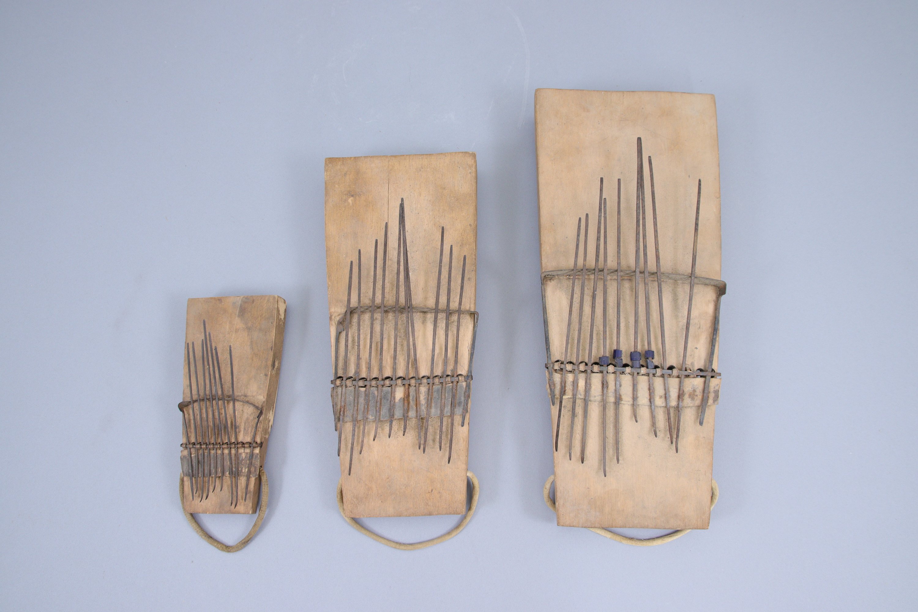 Trois lamellophones « Sanza », dits « piano à pouces »