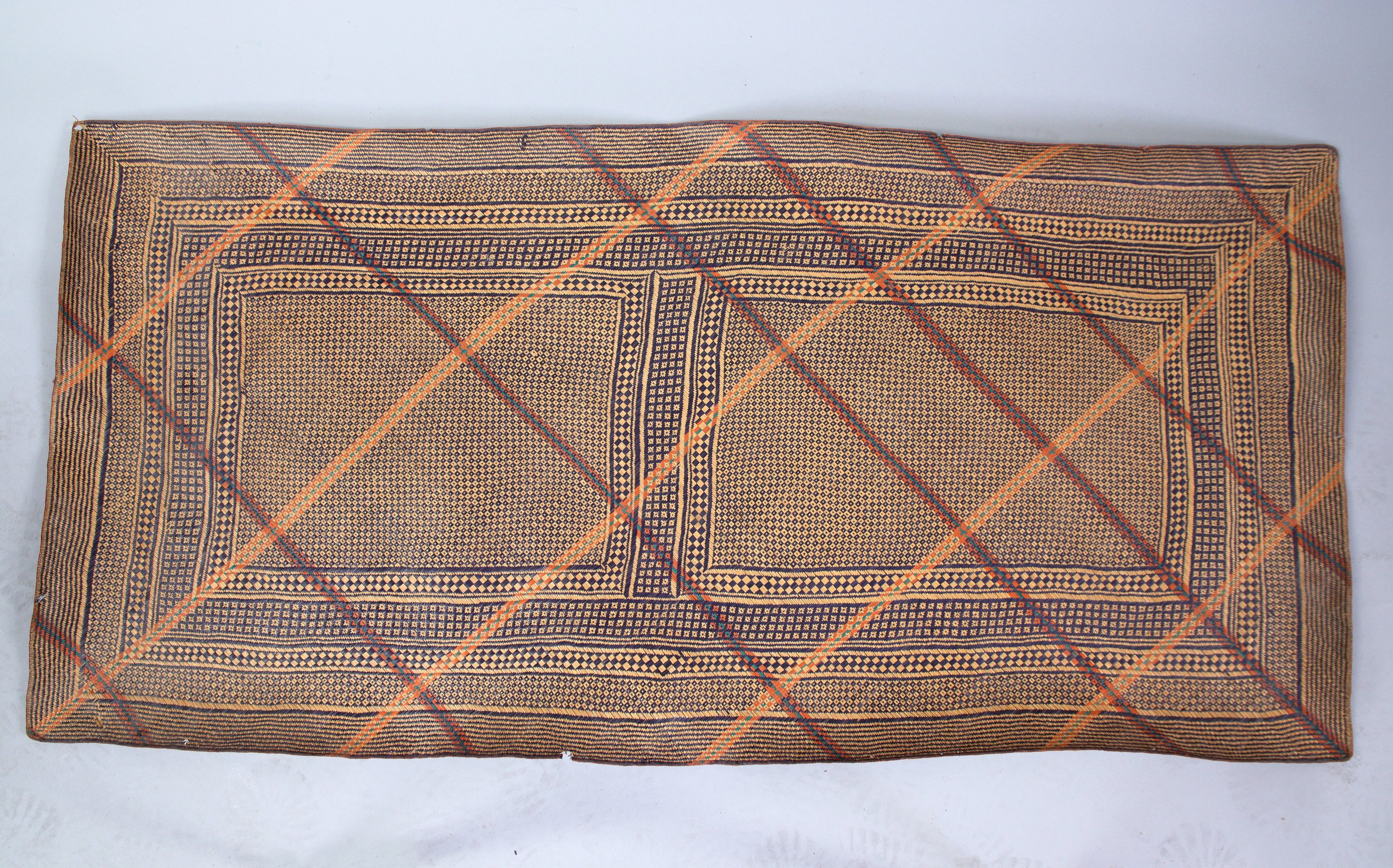 en fibres végétales tressées à décor géométrique en couleur naturelle.