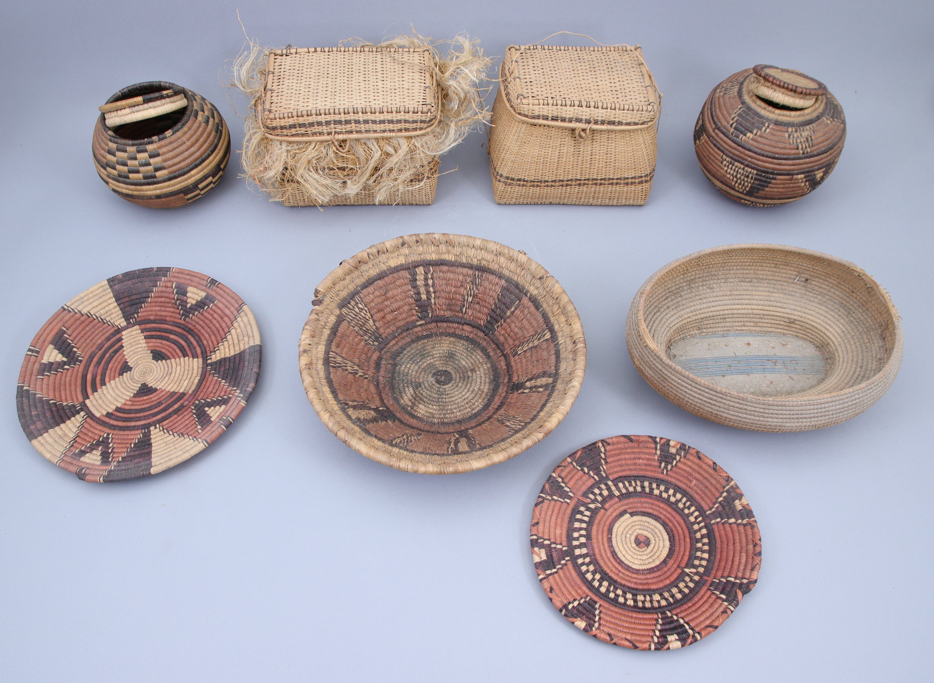 - de deux paniers malgaches en vannerie tressée de formes rectangulaires. Dim. 18x14x14 et 14x18x13 cm.