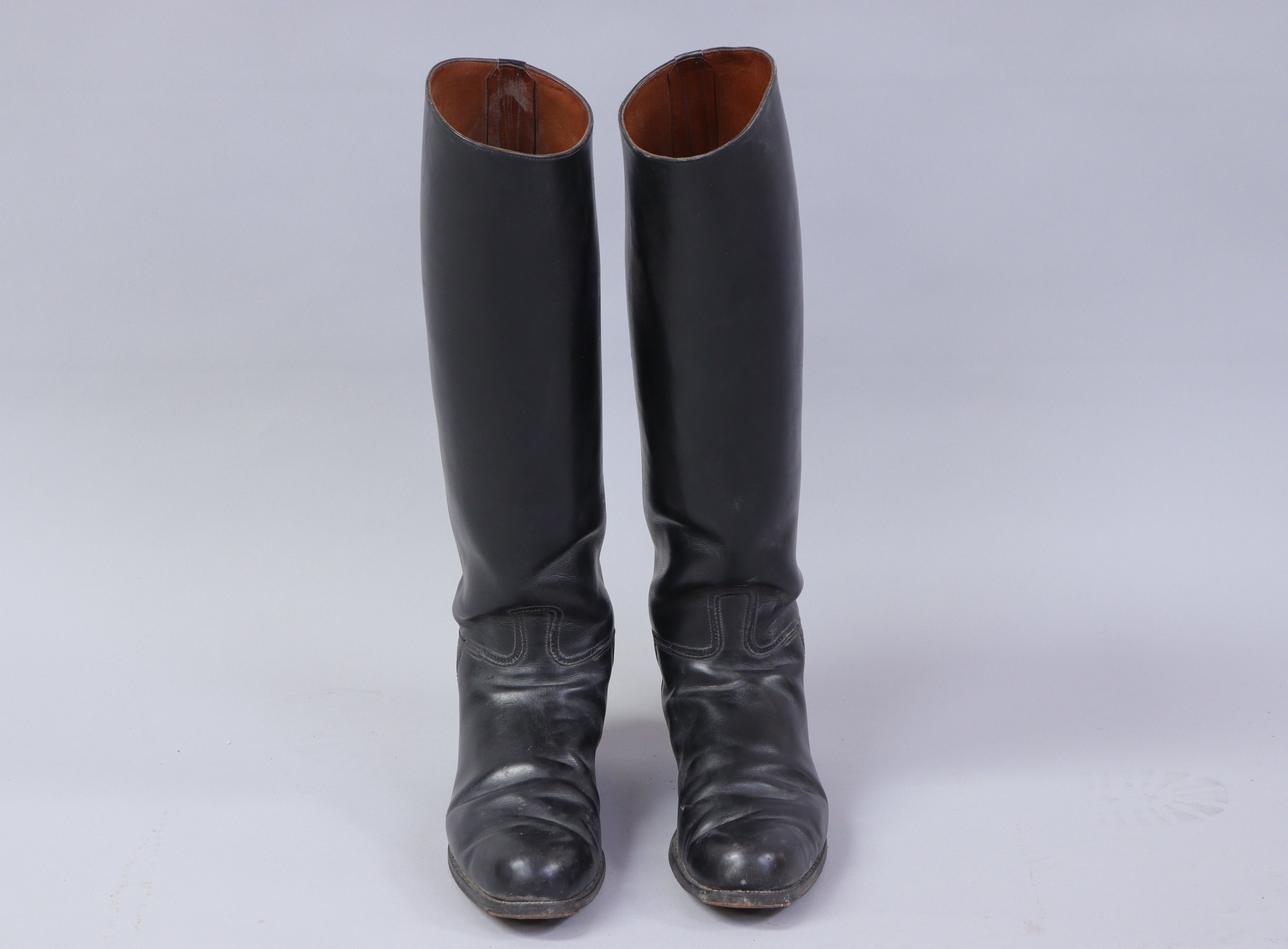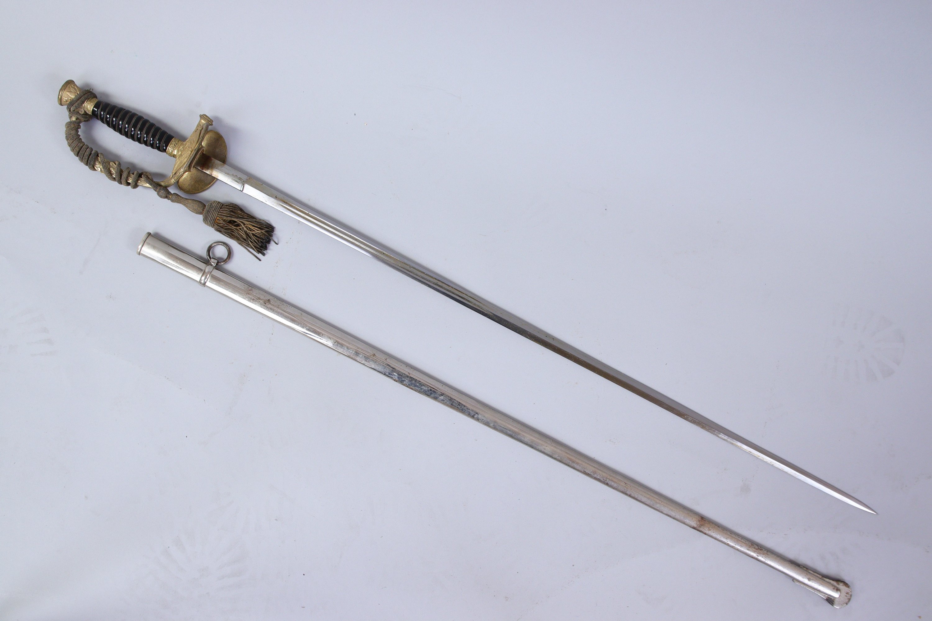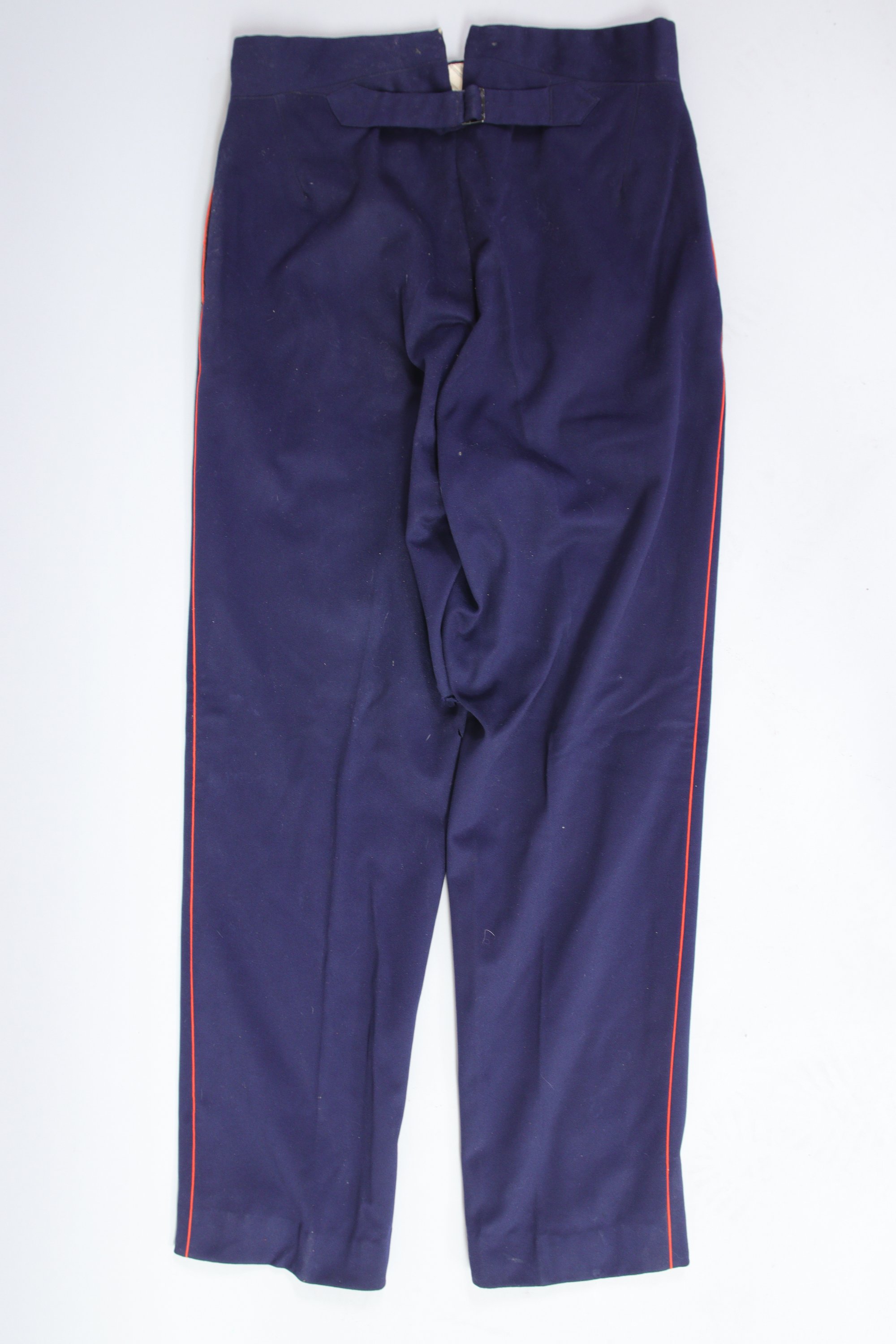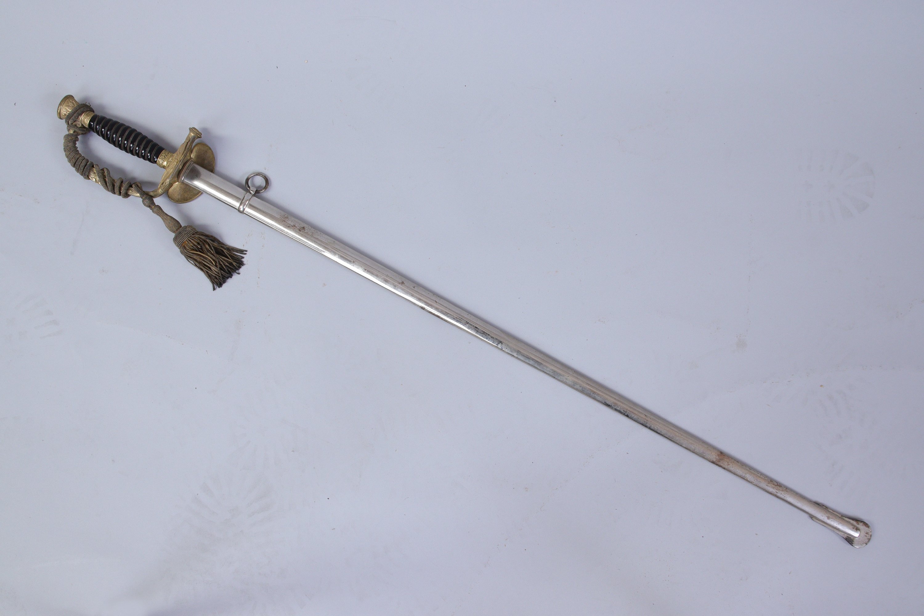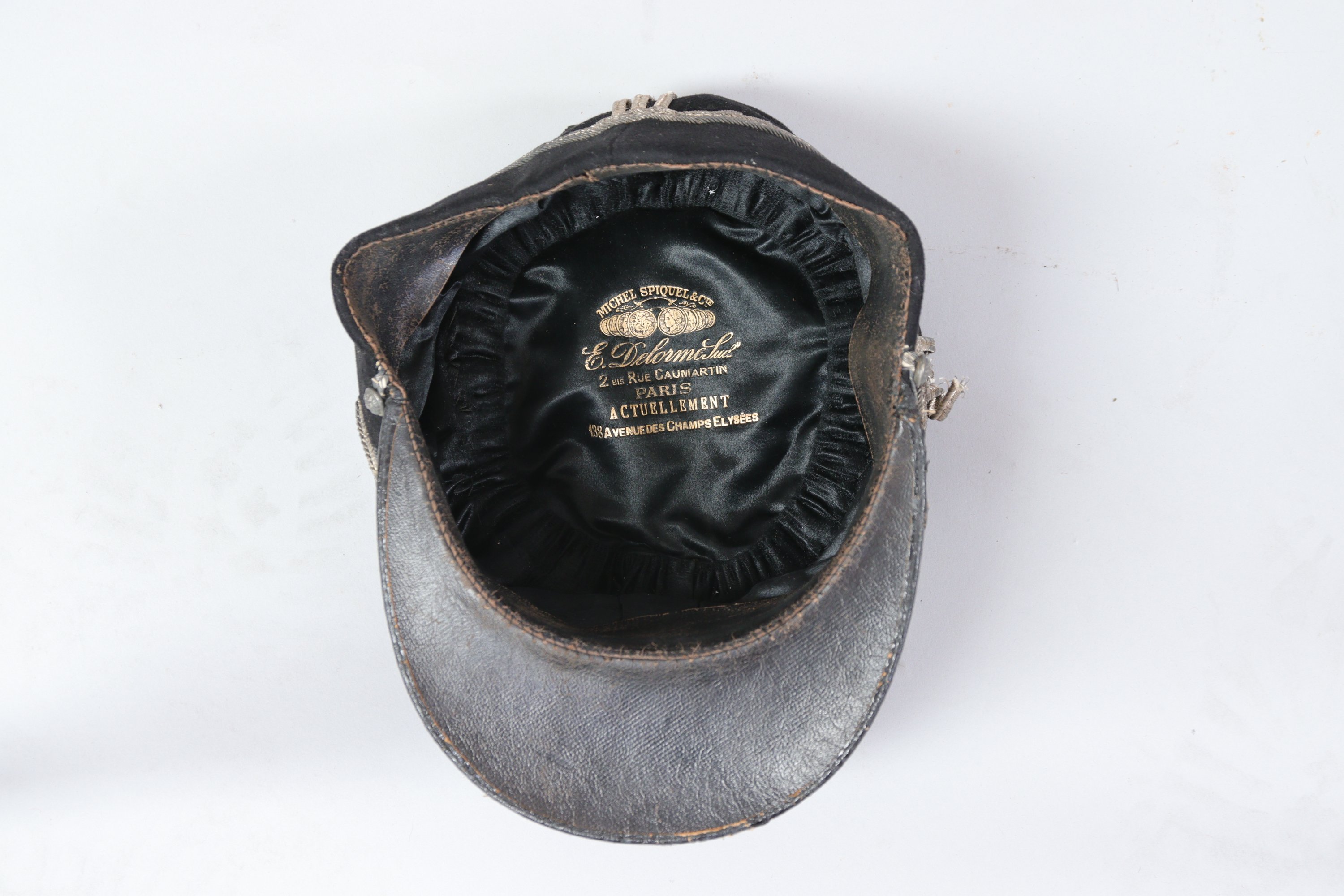 composé d'une veste d'officier et d'un képi en drap noir et galons argents, brodé de feuilles de chêne, d'un ceinturon, d'un pantalon de drap bleu et rouge, d'une paire de bottes et d'une épée en acier et laiton, la fusée en corne torsadéé.