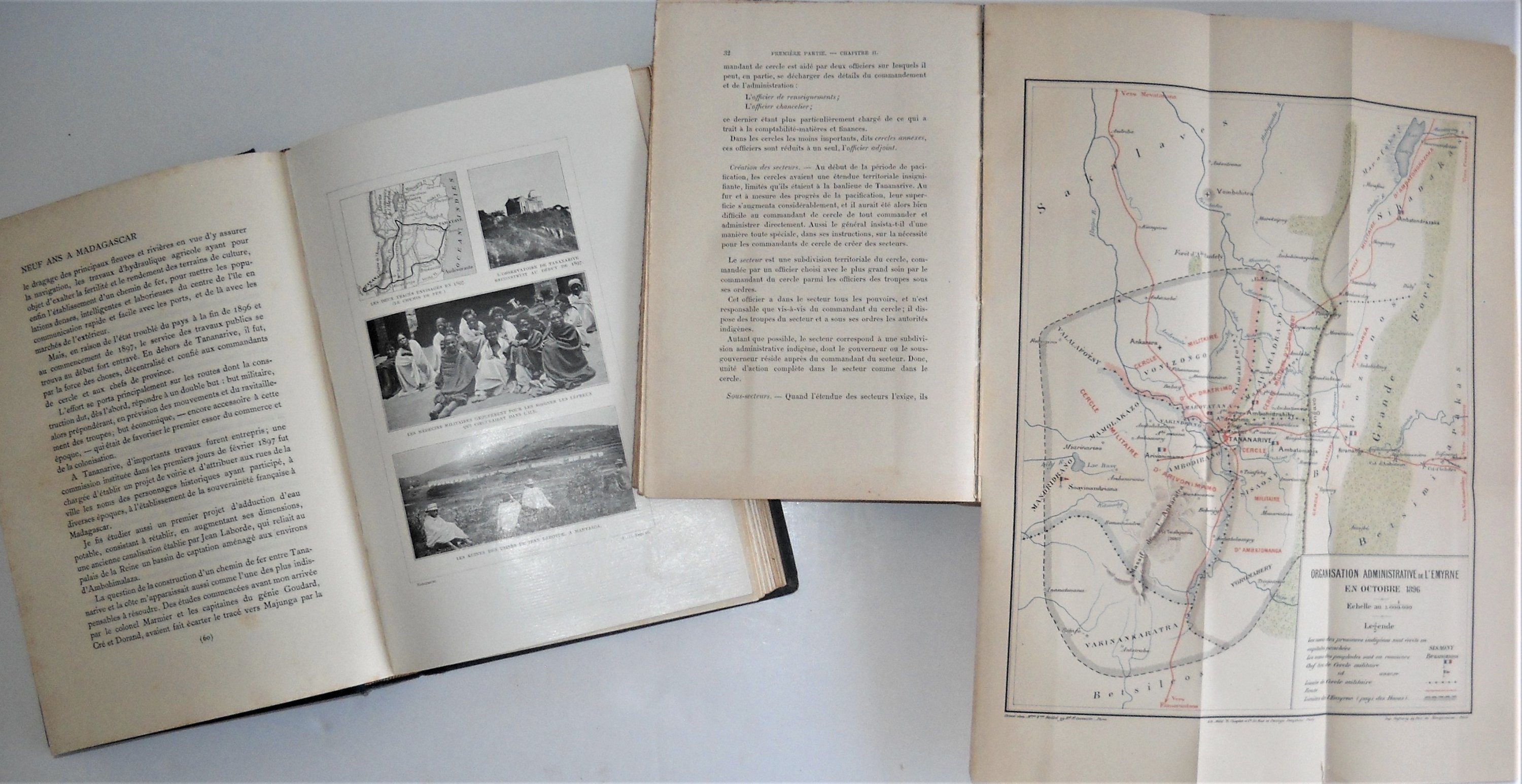 Neuf ans à Madagascar. Paris, Librairie Hachette & Cie, 1908. In-4 rel. toile, xiv-372 pp. (rousseurs) avec 71 pl. h.t. et carte dépliante.