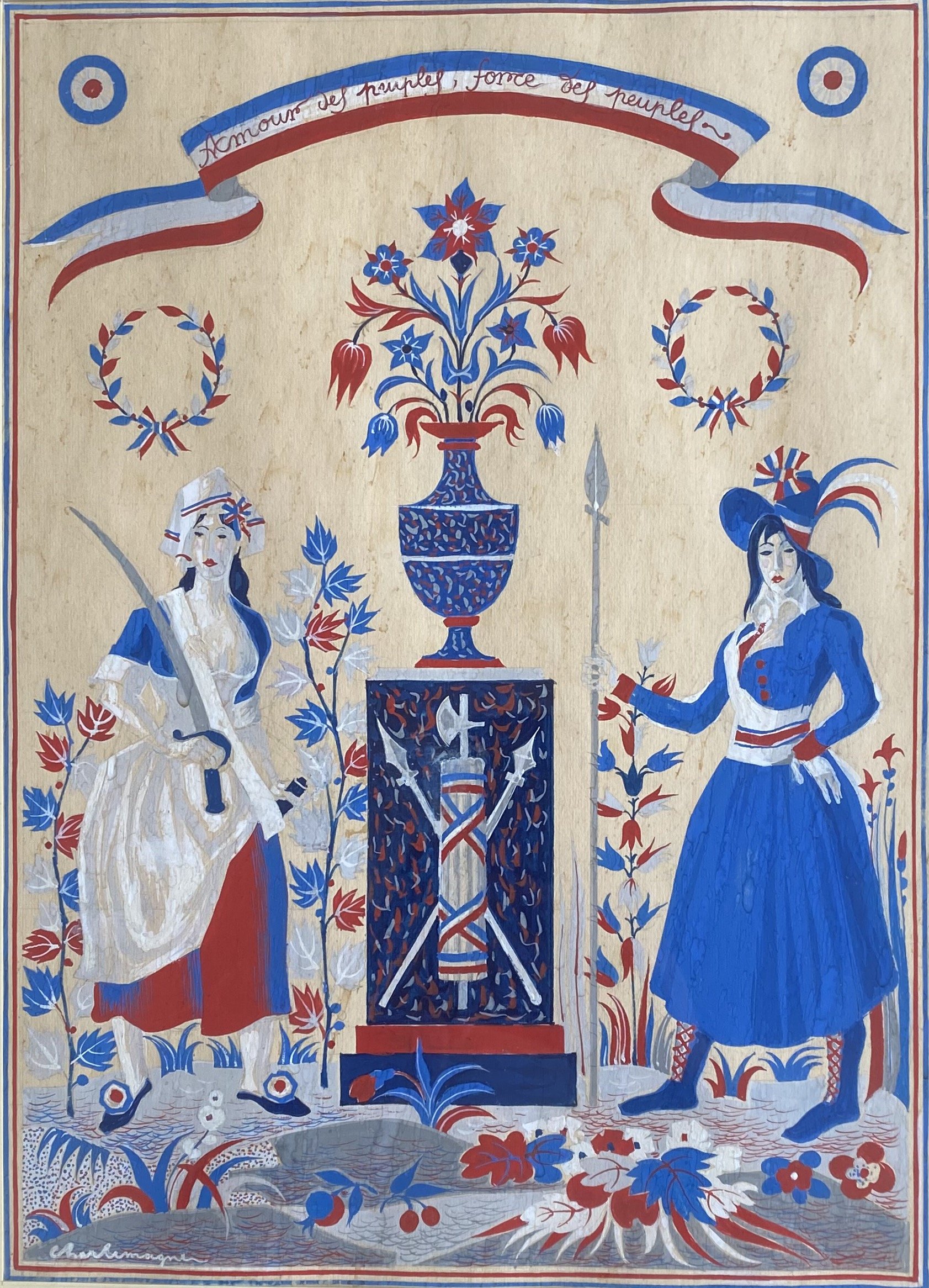 Paul Charlemagne (Paris, 1892-1932)"Amour des peuples, force des peuples"Gouache sur...