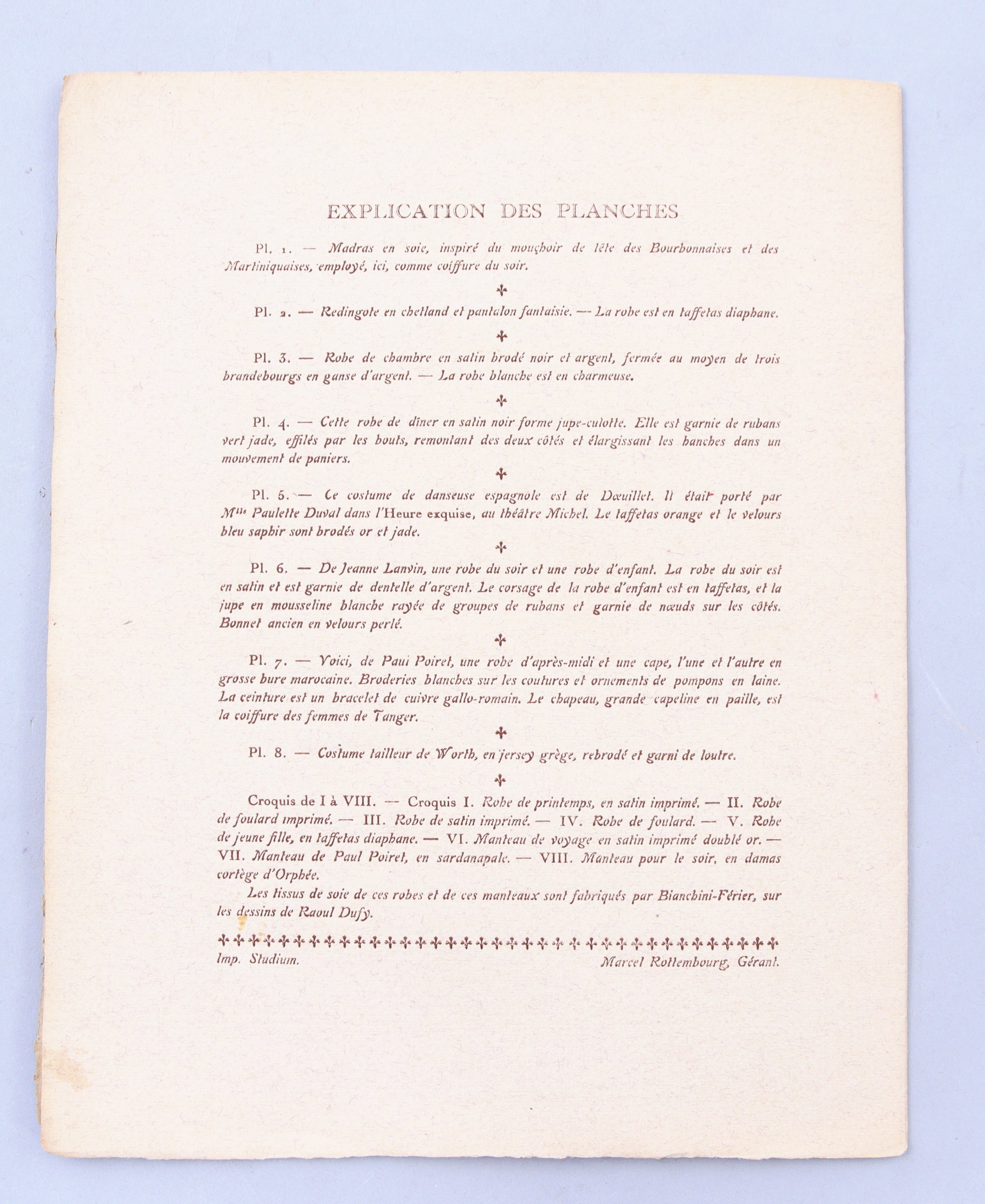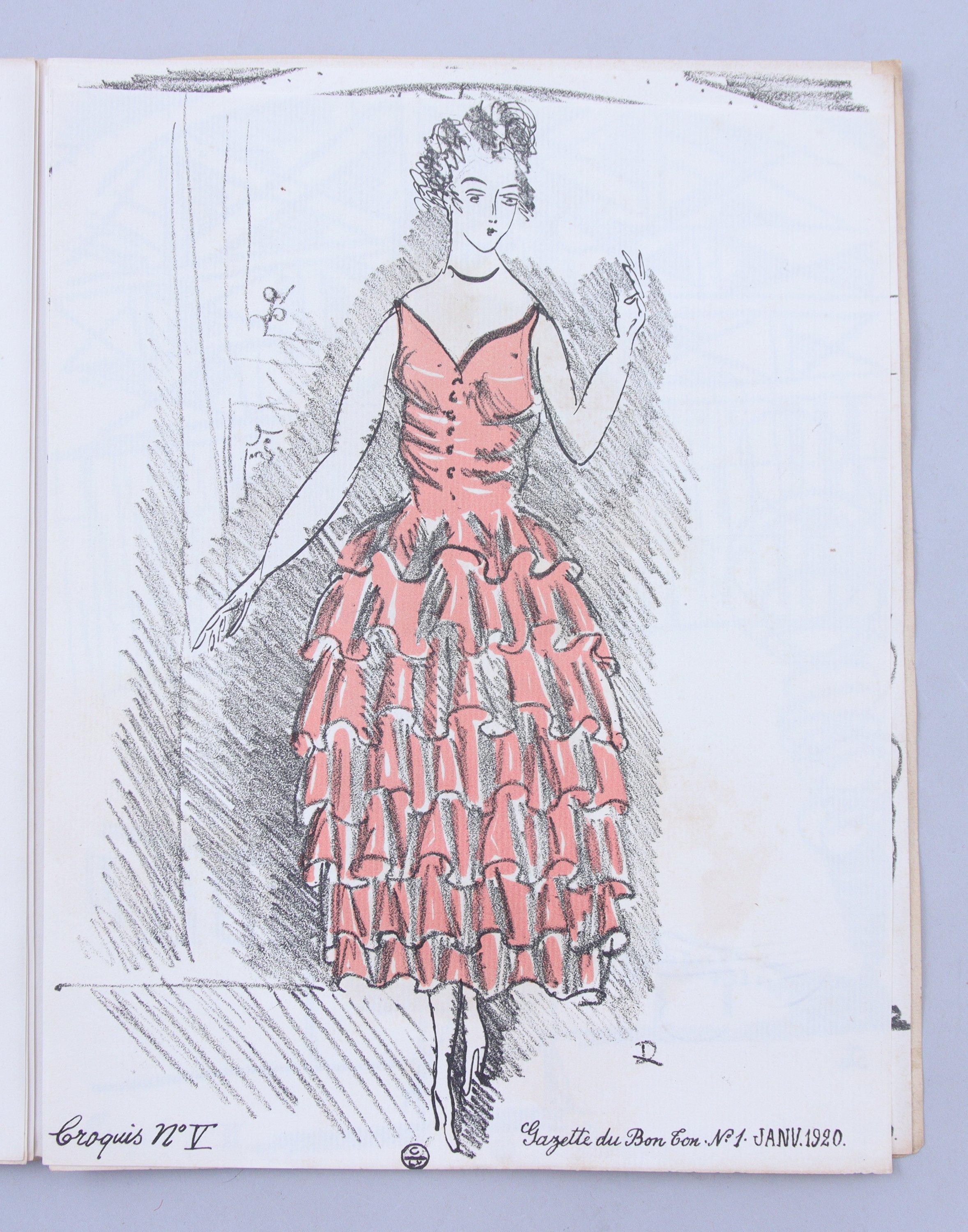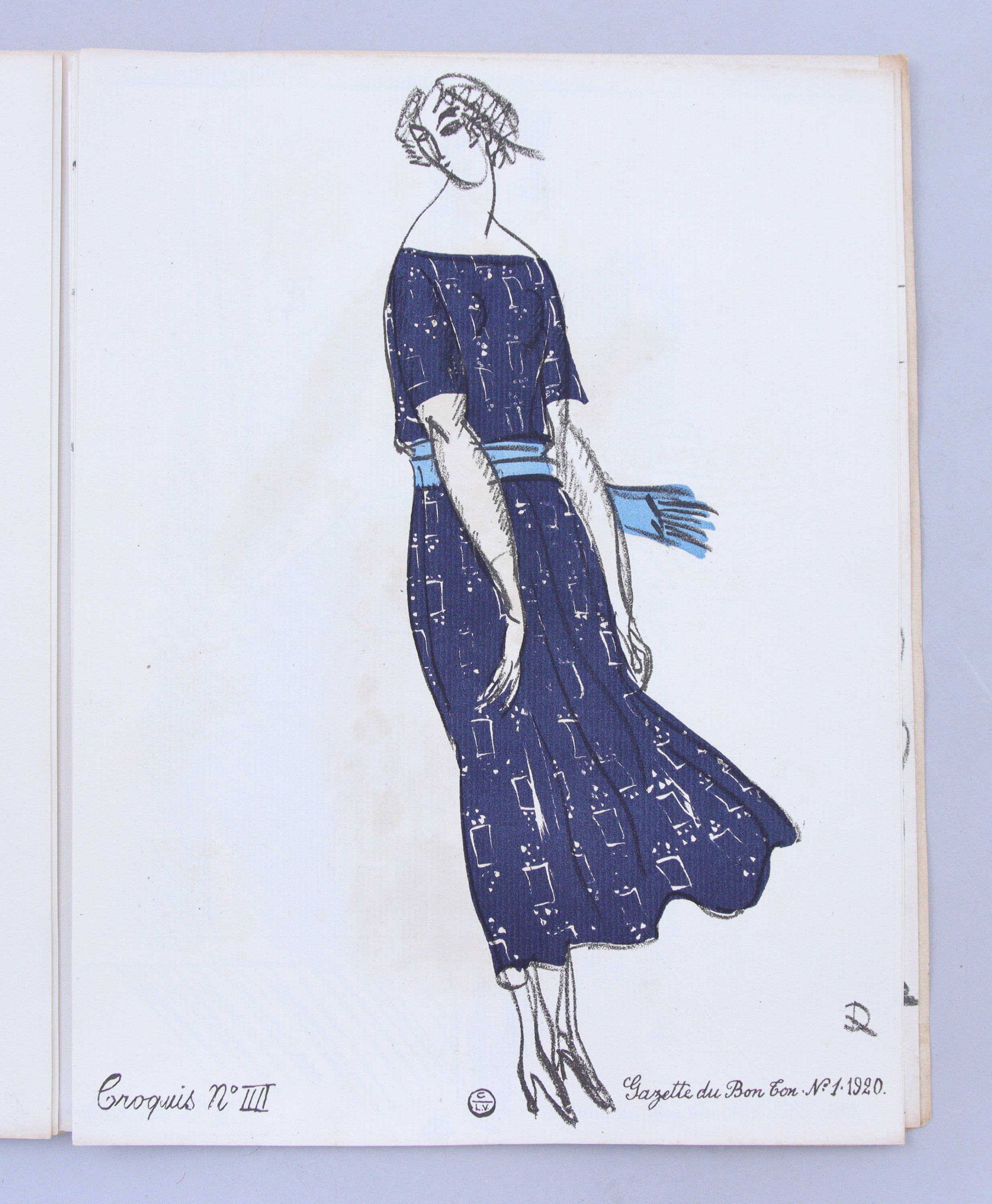 Croquis de mode. Soierie de Bianchini-Férier et Cie dessinées par Raoul Dufy. Gazette du bon ton, n° 1. Février 1920 - I à VIII.