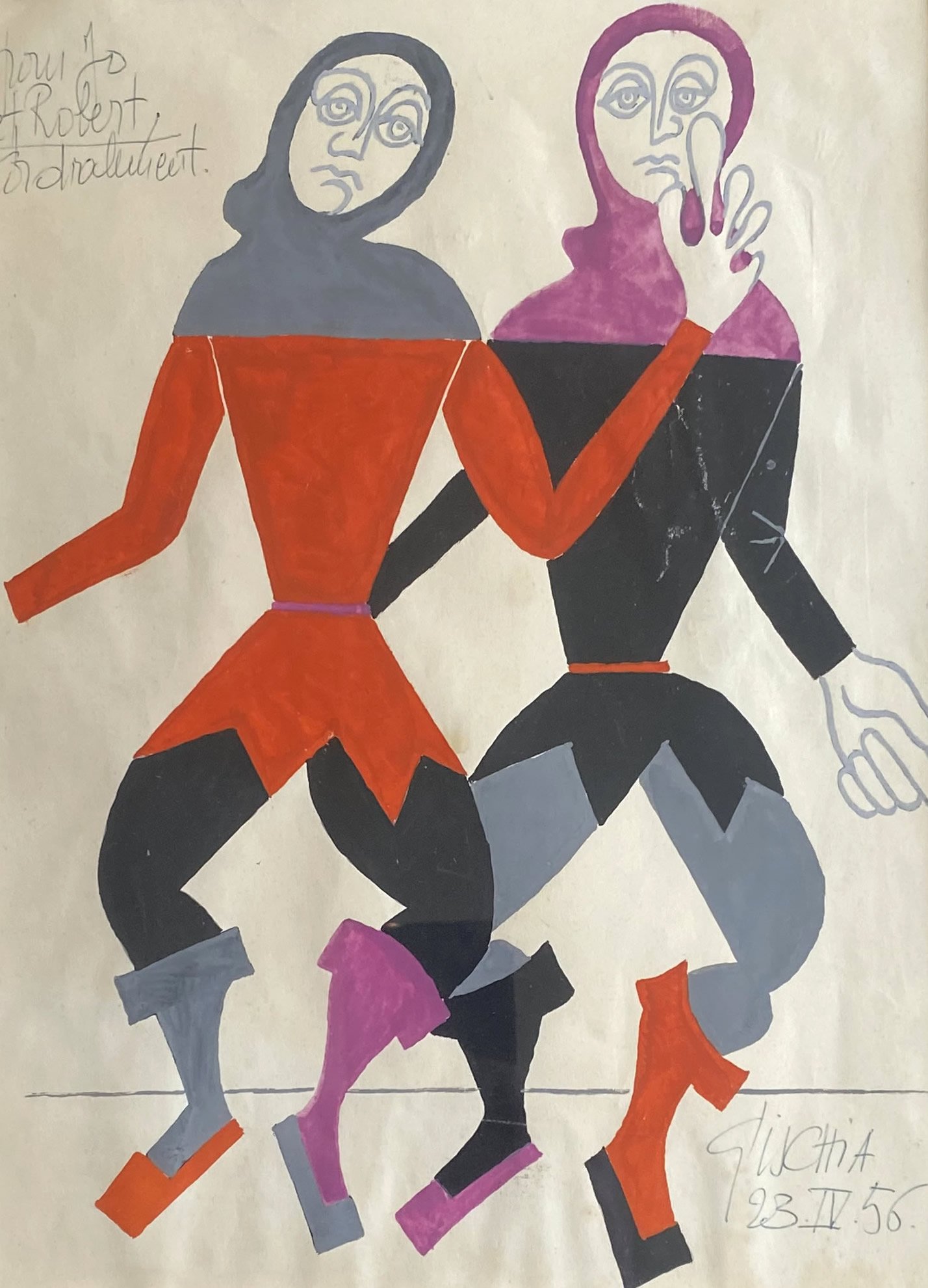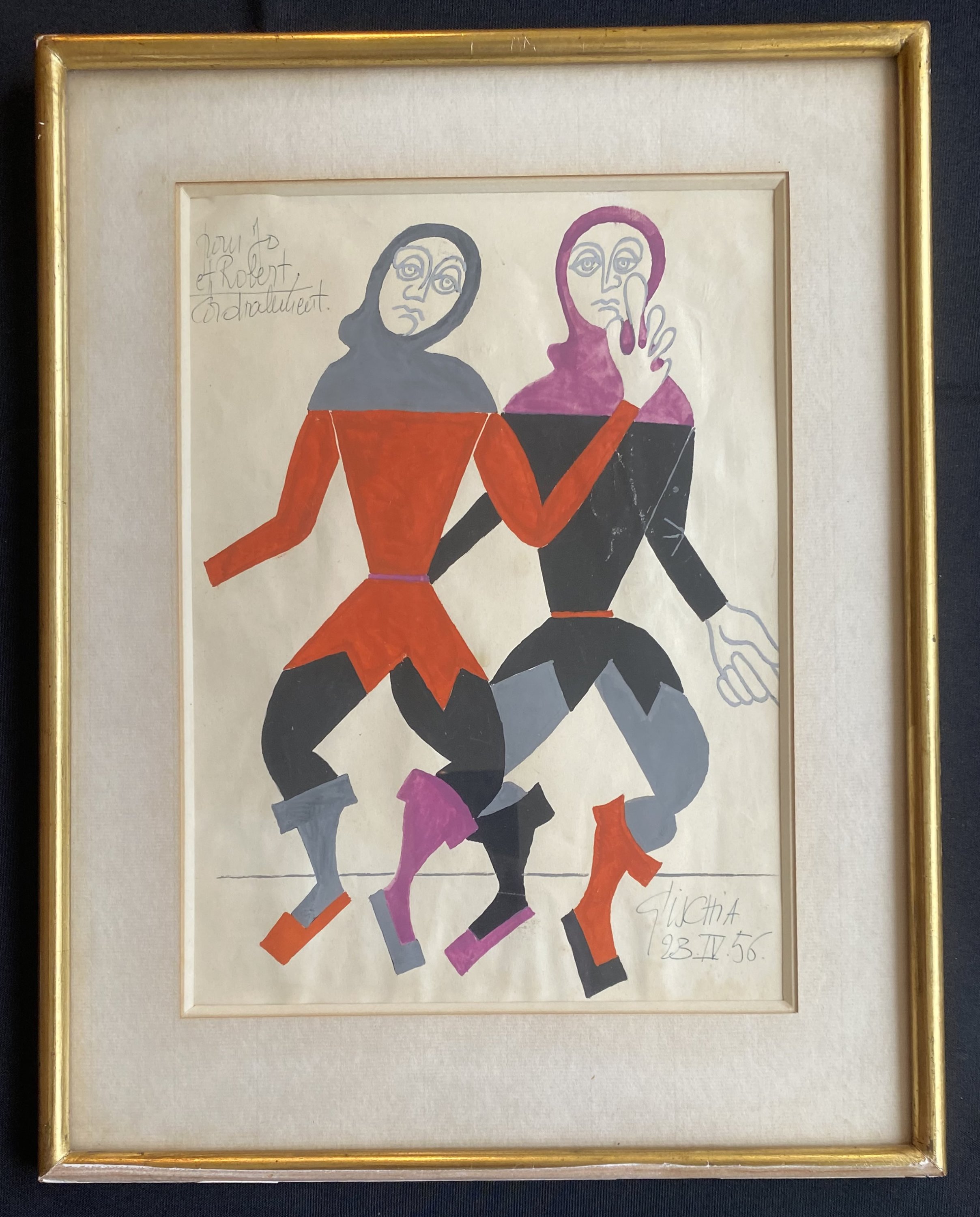 Signée et datée "23.IV.56" en bas à droite et envoi en haut à gauche "Pour Jo / et Robert / Cordialement".