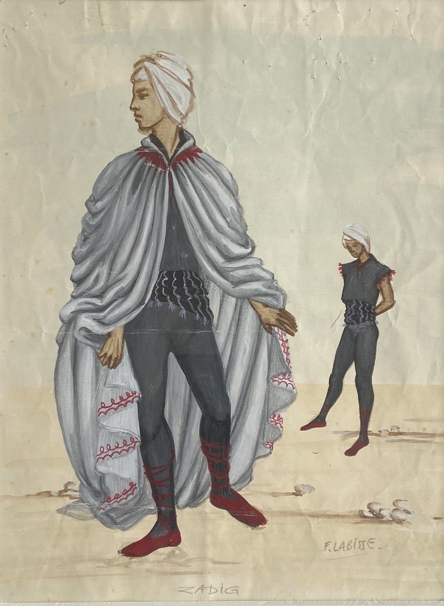 Projet de costume pour le ballet Zadig, livret de Serge Lifar et Pierre Petit, d'après Voltaire, 1948.