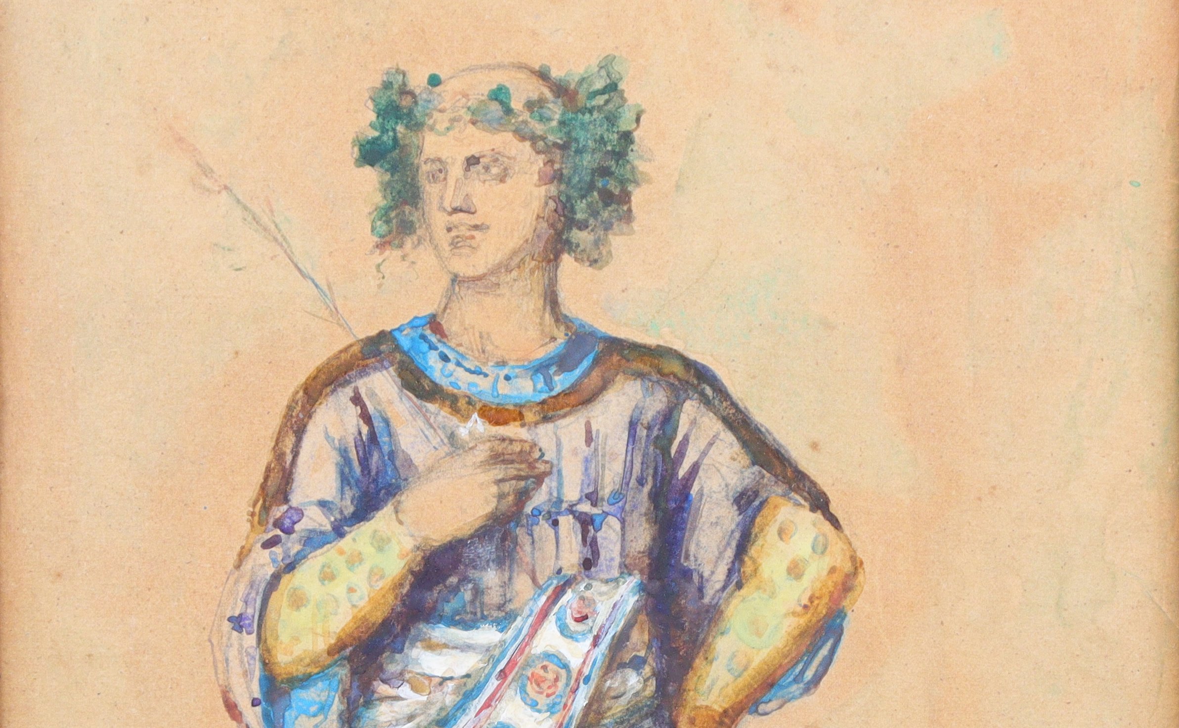 Étude de costume pour l'opéra Sapho, de Charles Gounod et Émile Augier. Le rôle de Pythéas est joué par Pedro Gailhard.