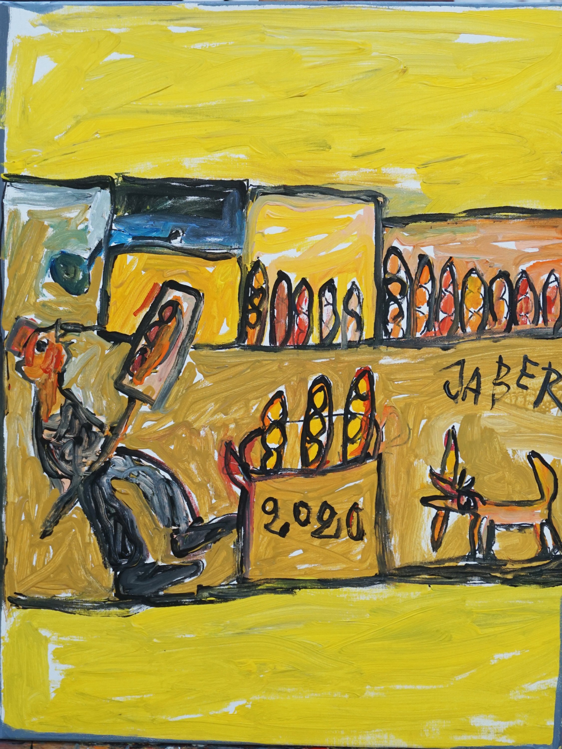 Jaber (Tunisien, 1938-2021), Jaber El Mahjoub, ditJe suis boulanger, 2020Acrylique...