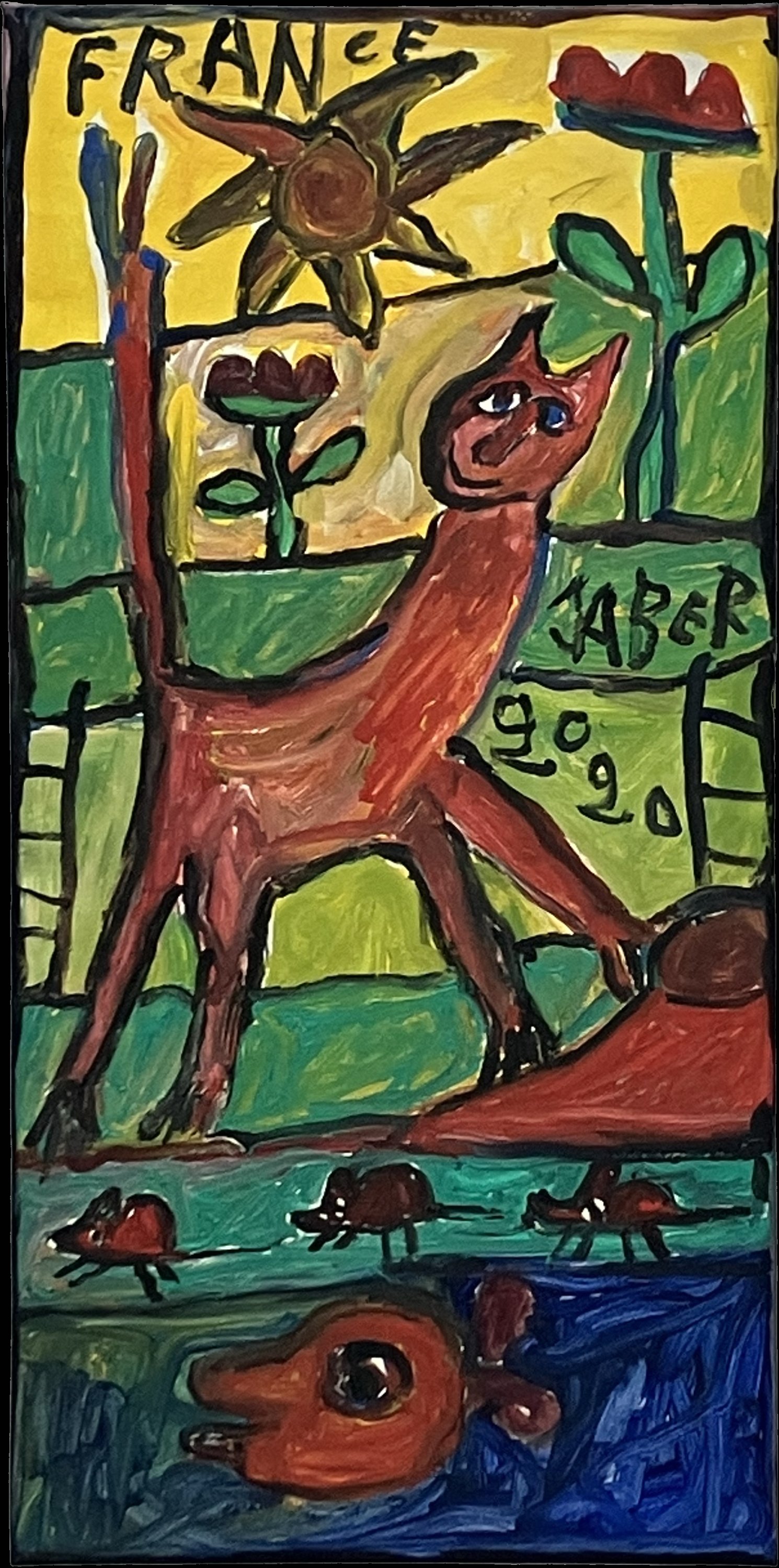Jaber (Tunisien, 1938-2021), Jaber El Mahjoub, ditLe chat sportif, 2020	Acrylique...