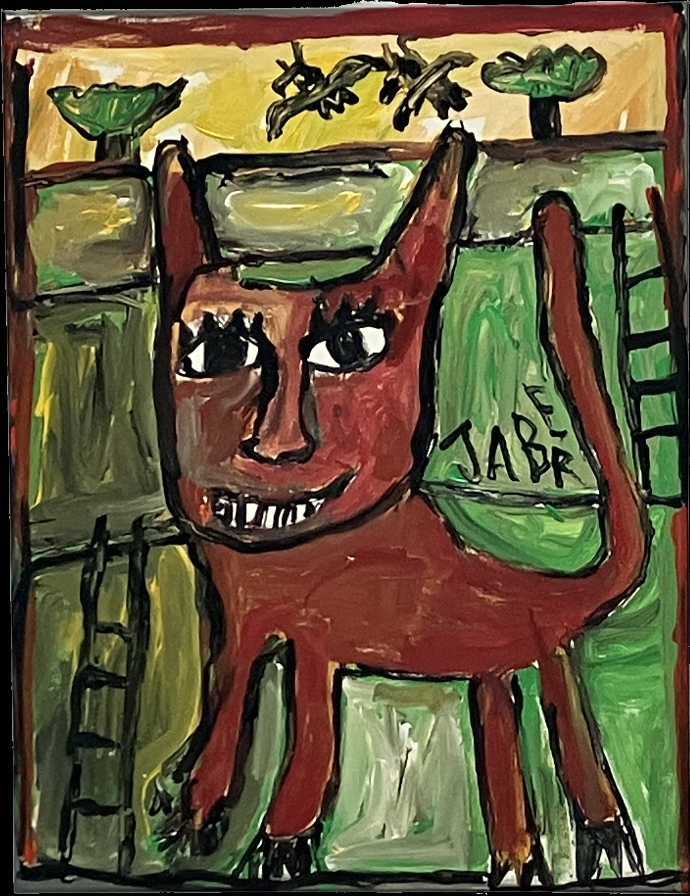 Jaber (Tunisien, 1938-2021), Jaber El Mahjoub, ditLe chat, 2021	Acrylique sur...