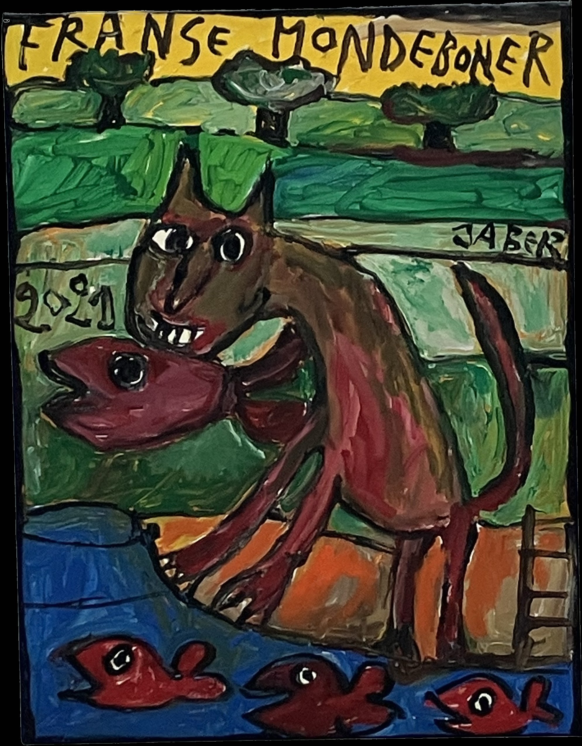 Jaber (Tunisien, 1938-2021), Jaber El Mahjoub, ditChat et poisson, 2020	Acrylique...