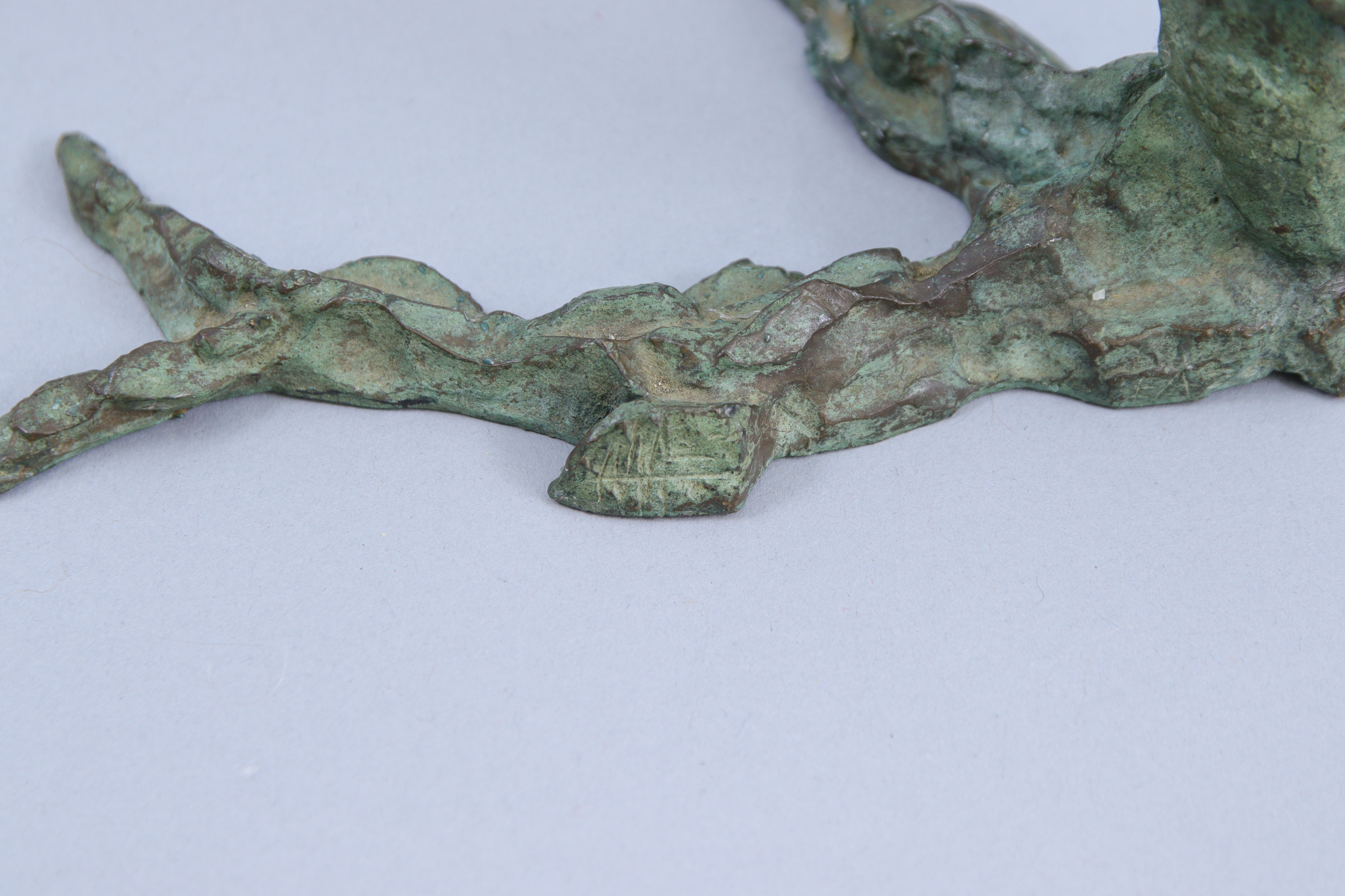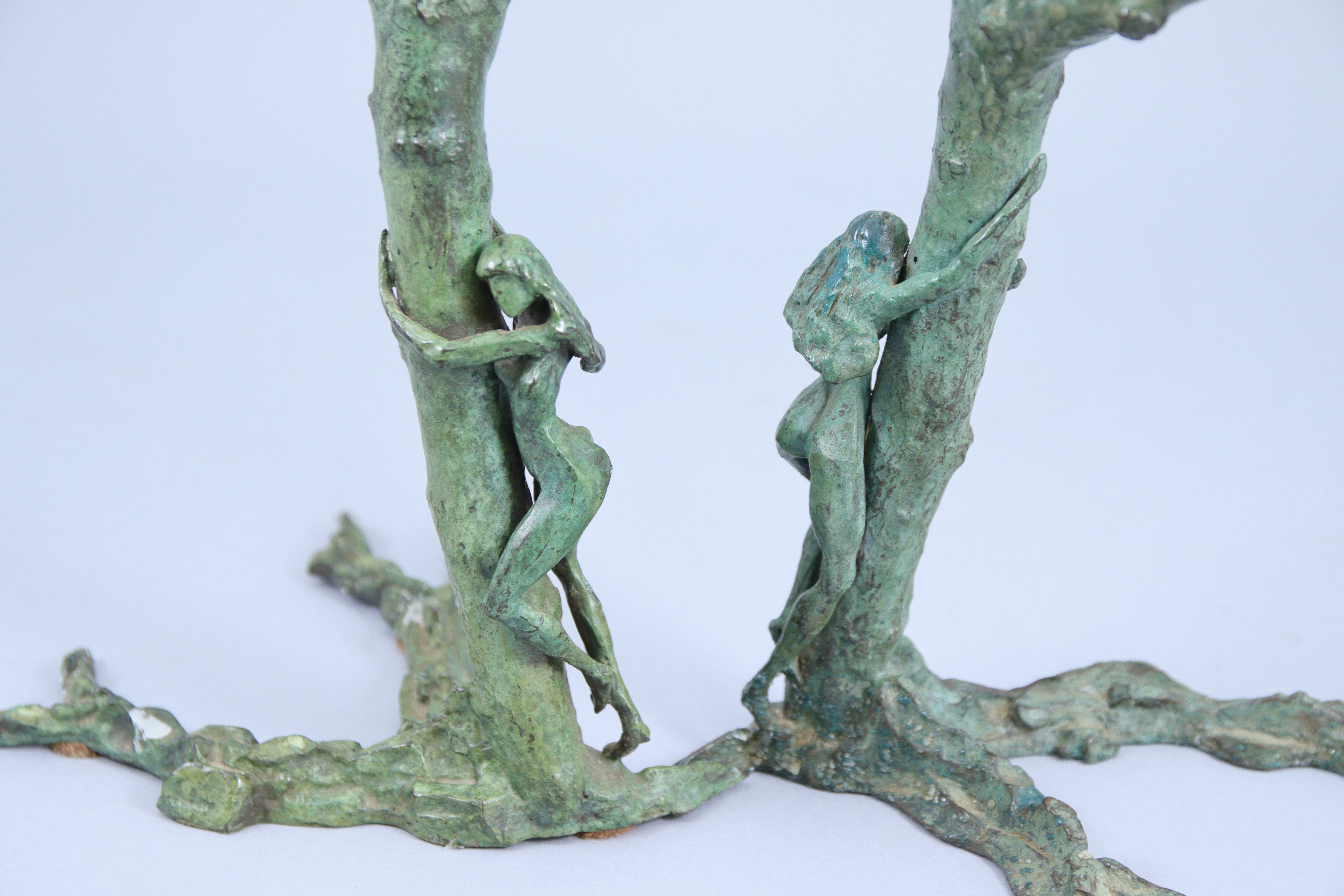en bronze à patine verte, en forme d'arbre à six branches enlacé par une femme.