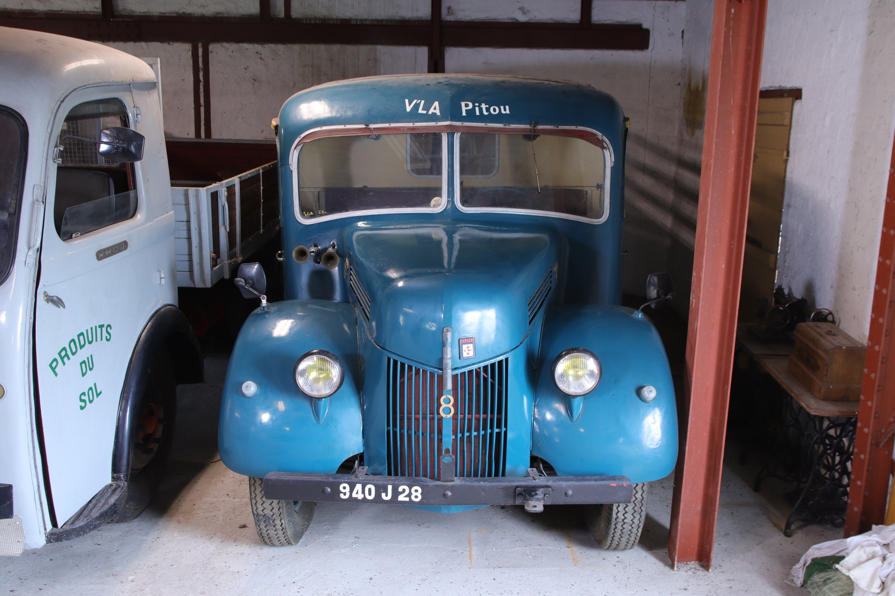 Véhicule livré en 1948 au service départemental d’incendie de l’Eure-et-Loir carrossé en fourgon d’incendie normalisé. Après sa réforme, a été transformé en camion civil et équipé d’un plateau à ridelles tout en conservant la partie avant de sa cabine.