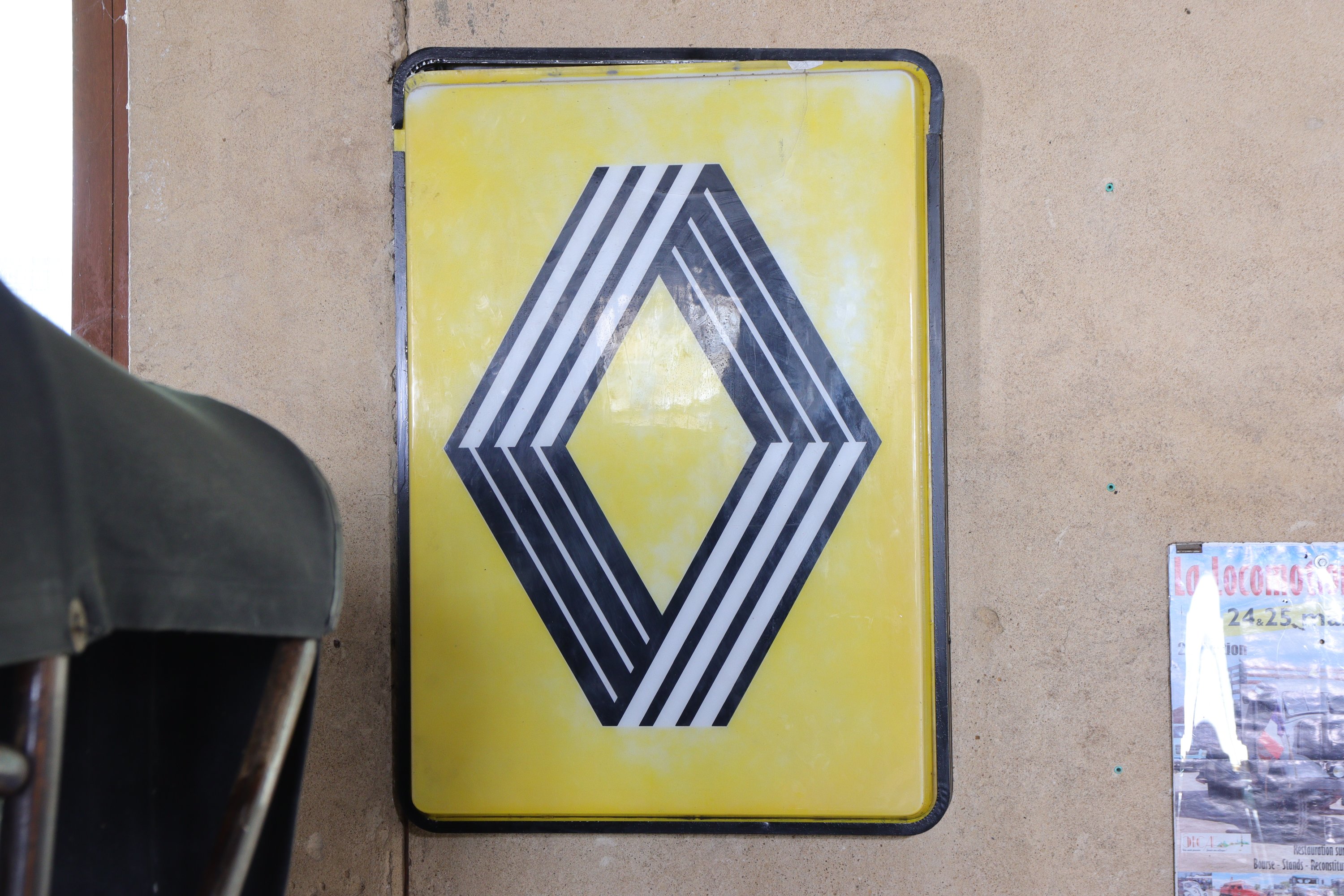 Réunion d’objets publicitairesdont enseignes lumineuses Renault et Citroën, plaques de...