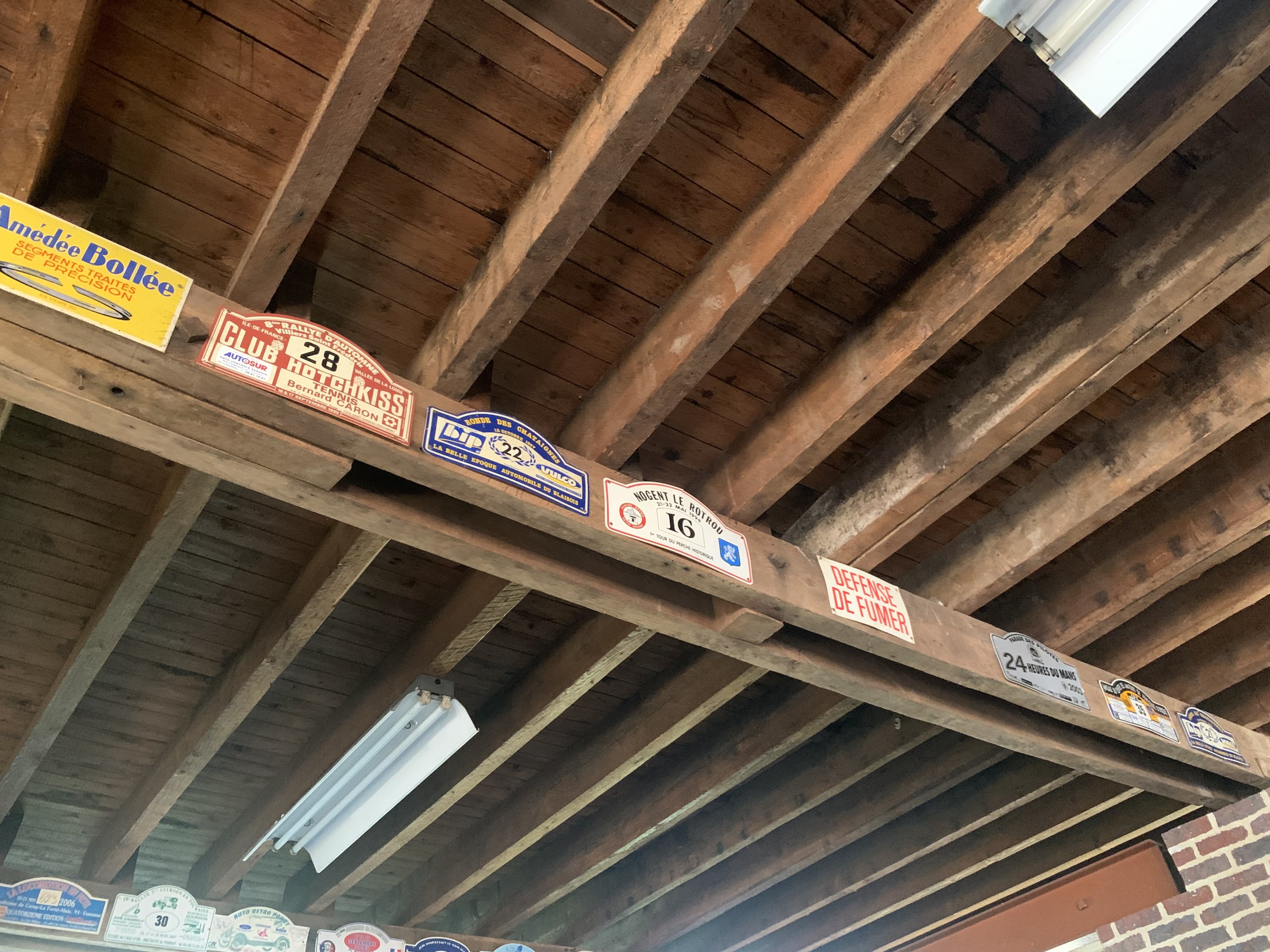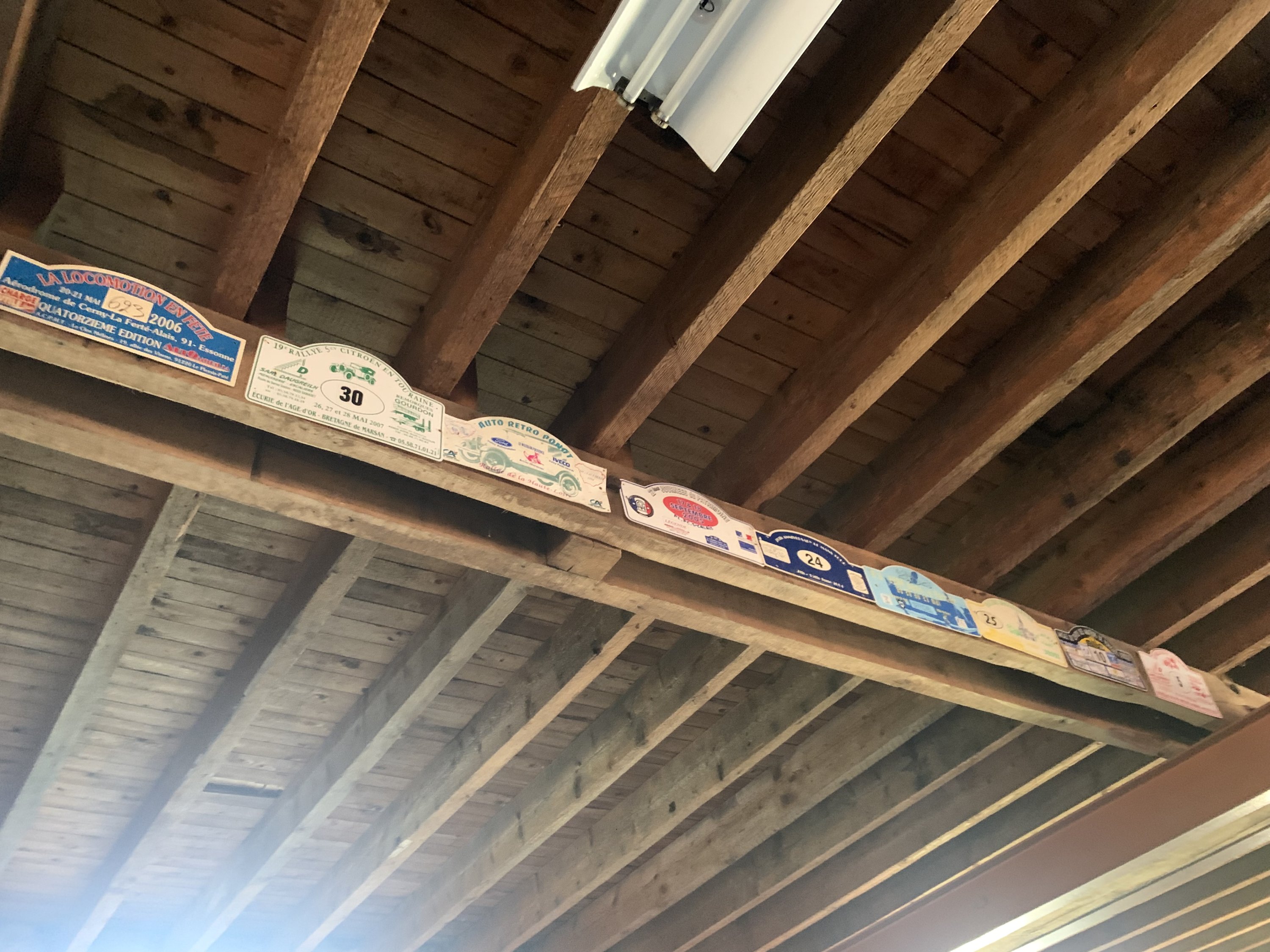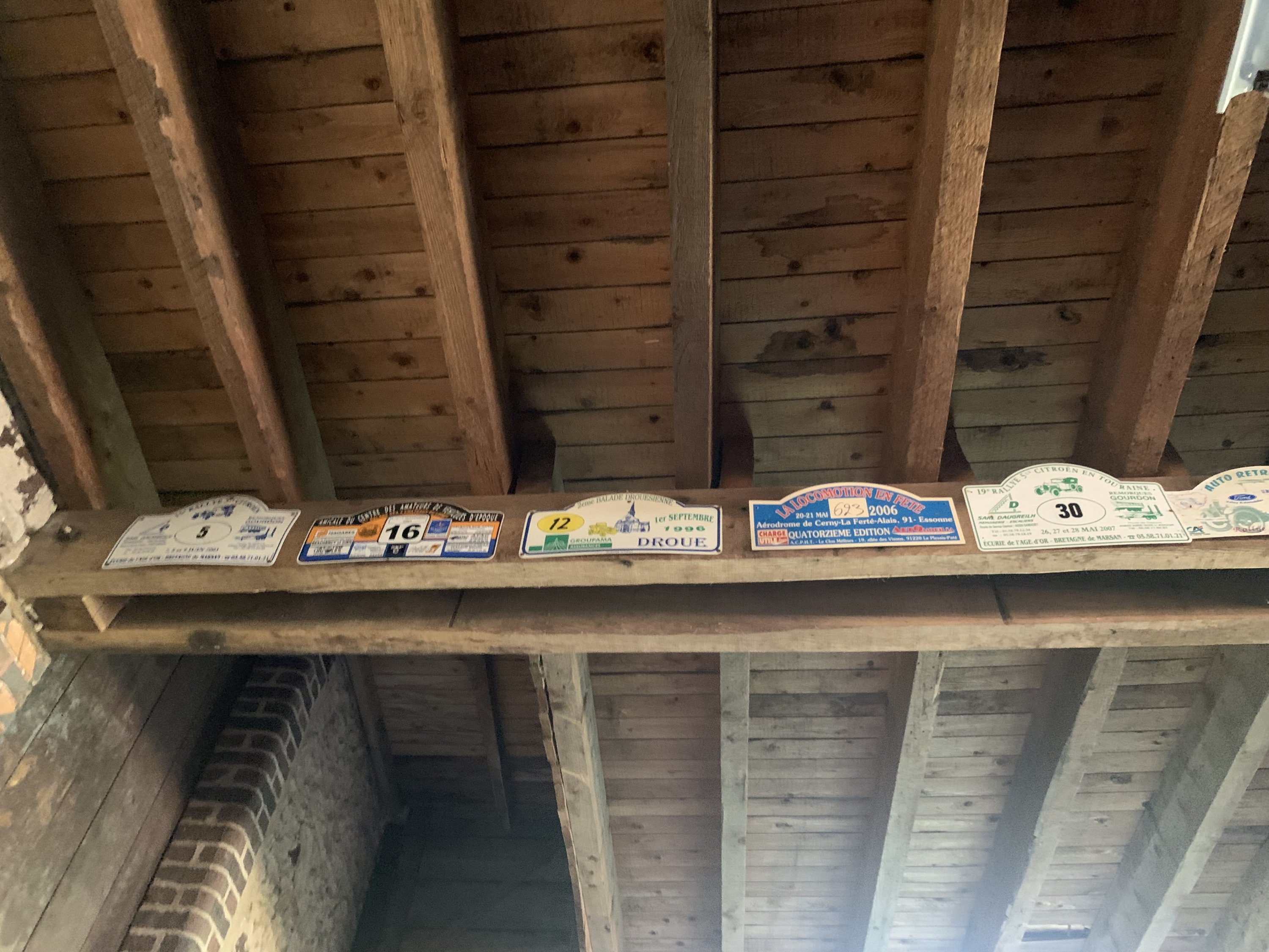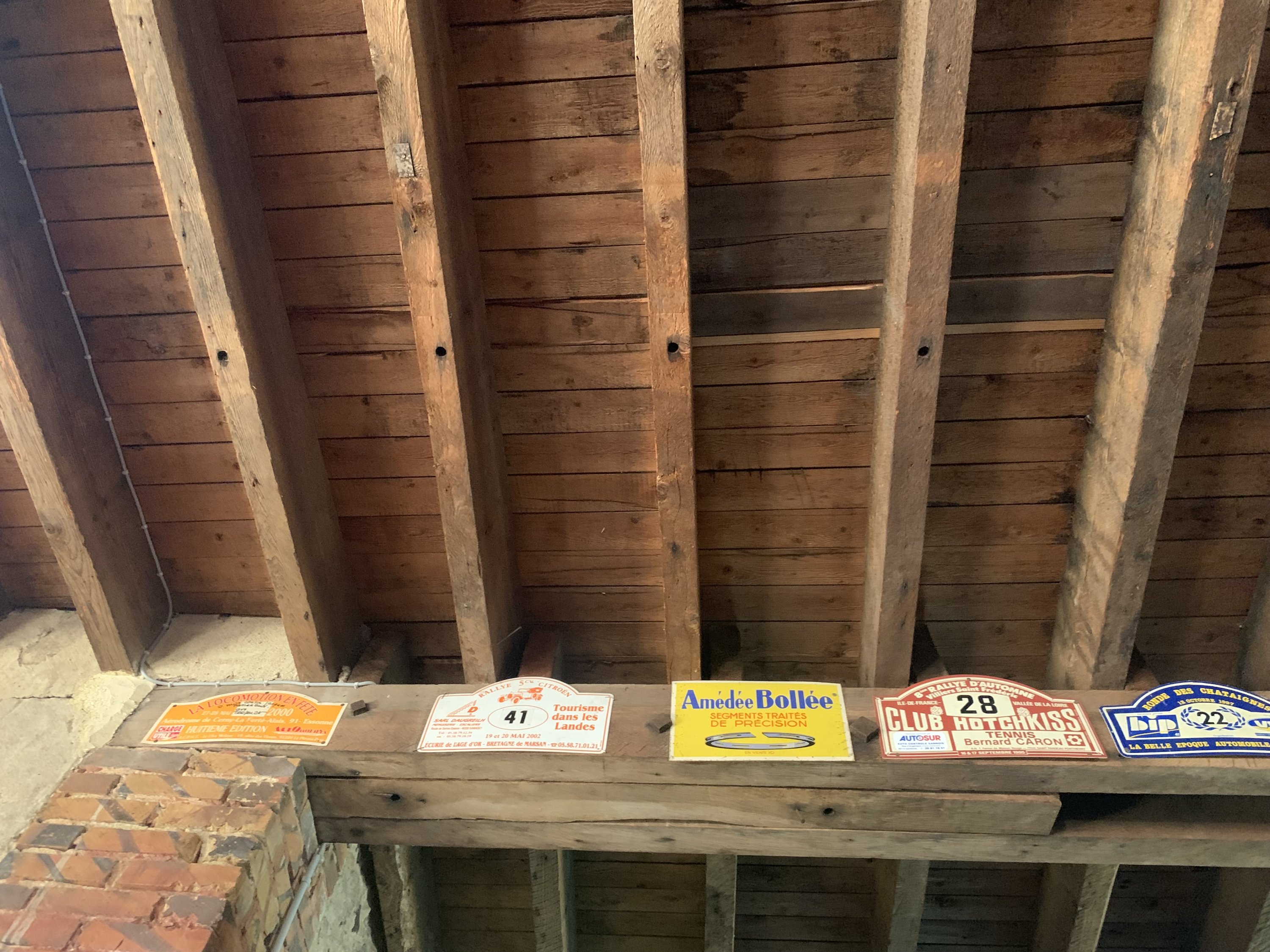 dont enseignes lumineuses Renault et Citroën, plaques de rallyes et une calandre Peugeot.