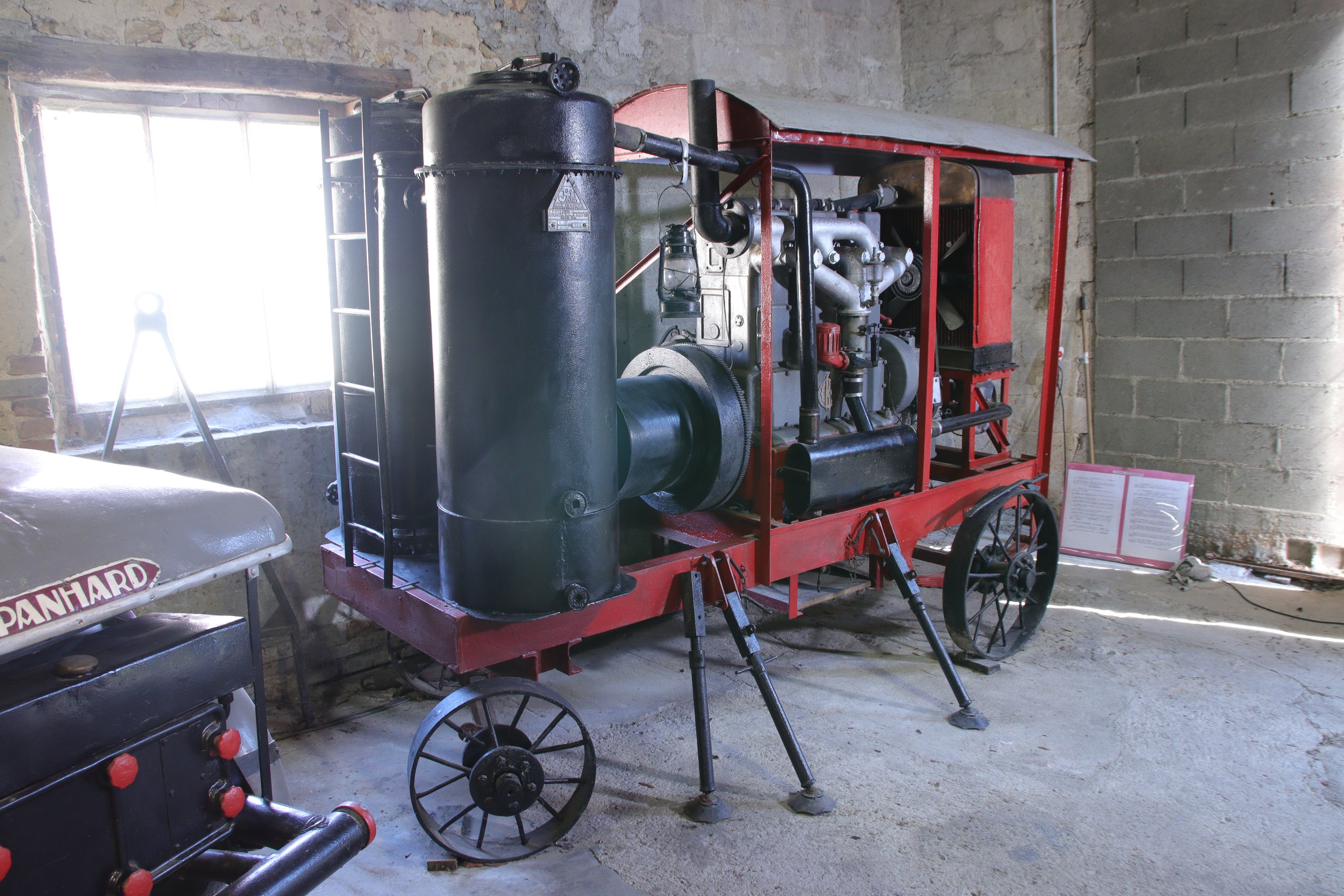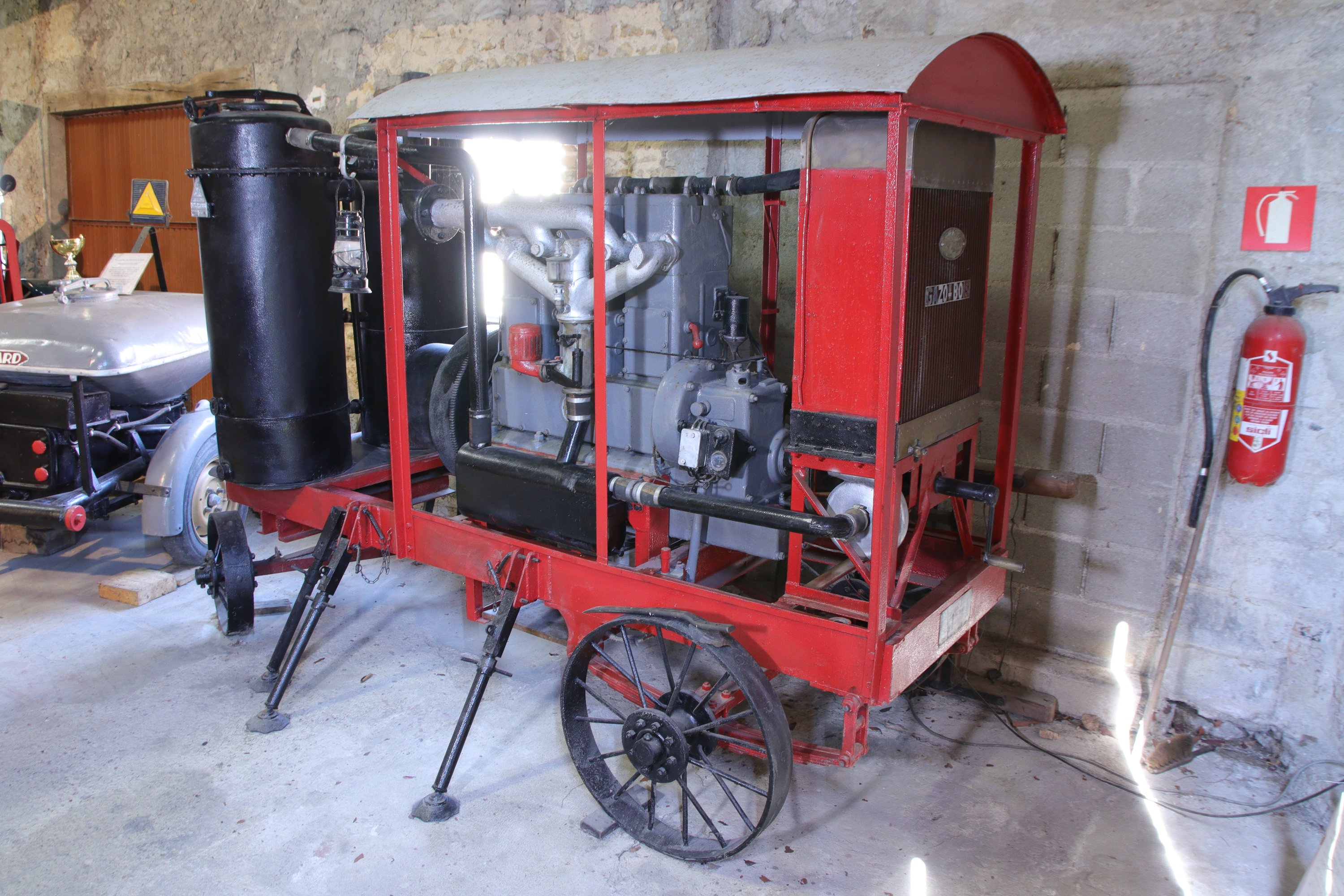 Modèle utilisé pour animer des batteuses ou des scies circulaires, équipé pour fonctionner au gazogène à bois.