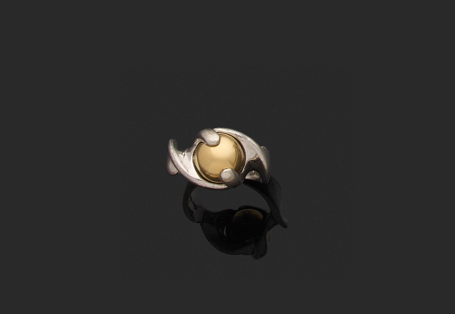 en argent 925 millièmes, le centre à décor d'une torsade retenant une boule.
