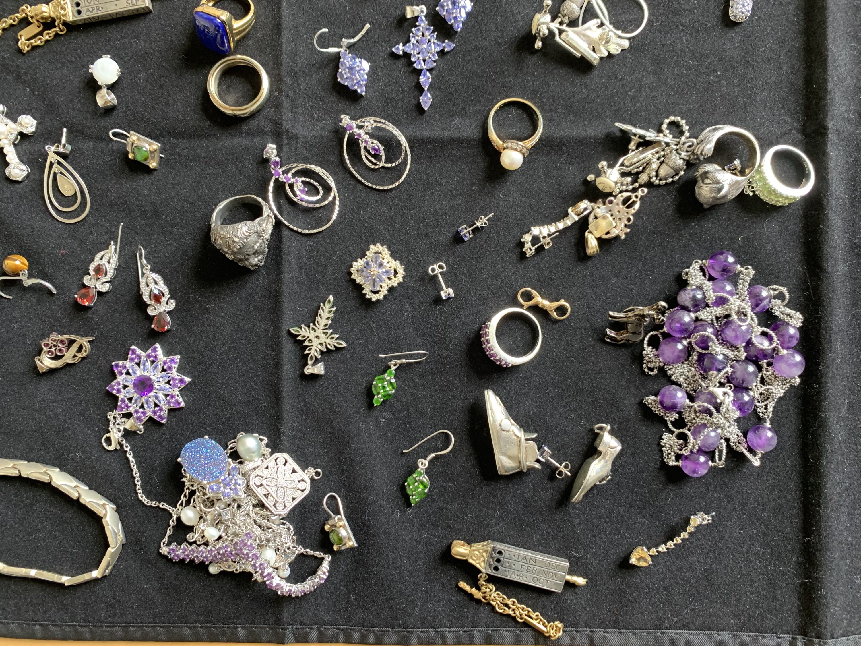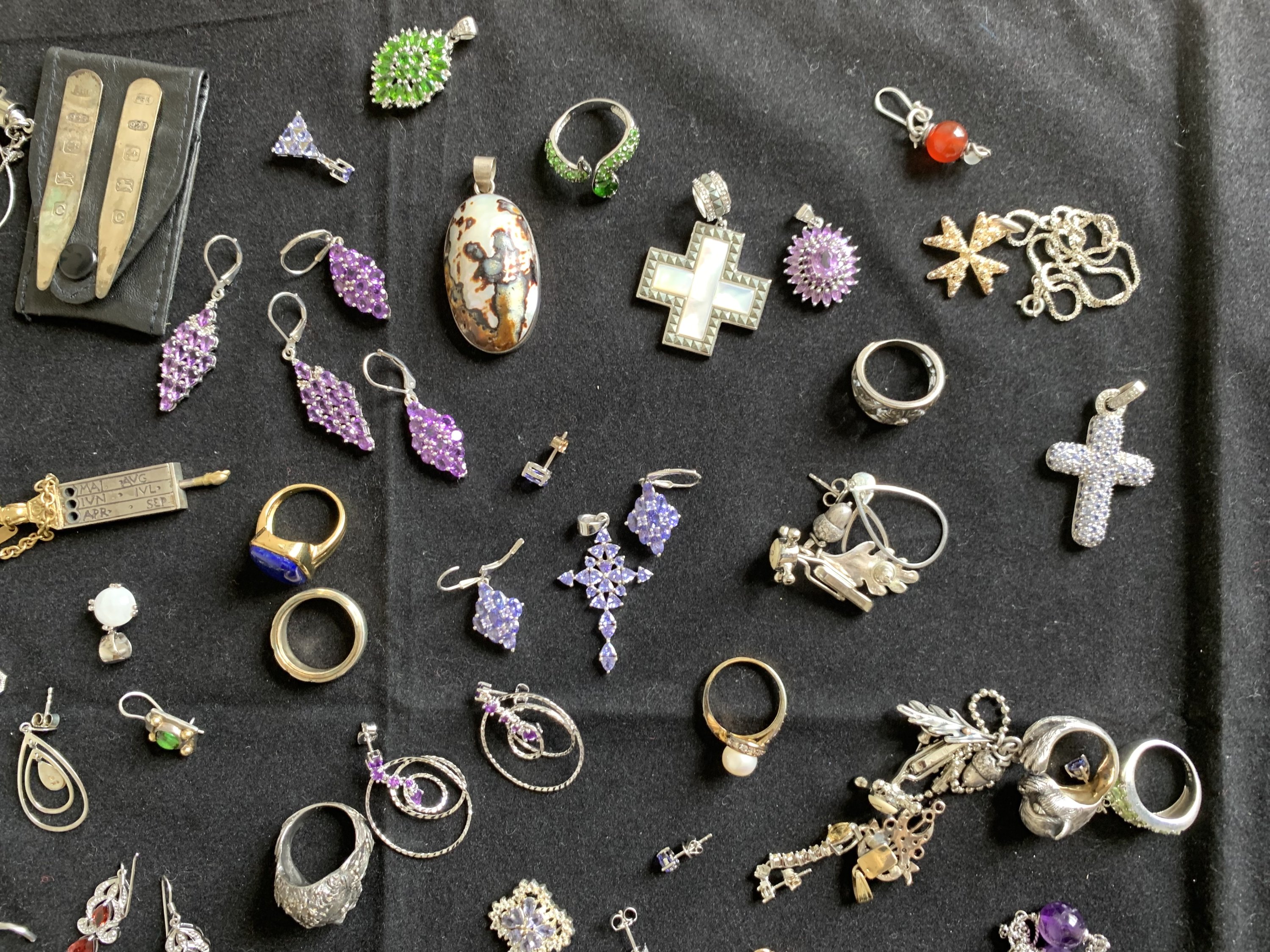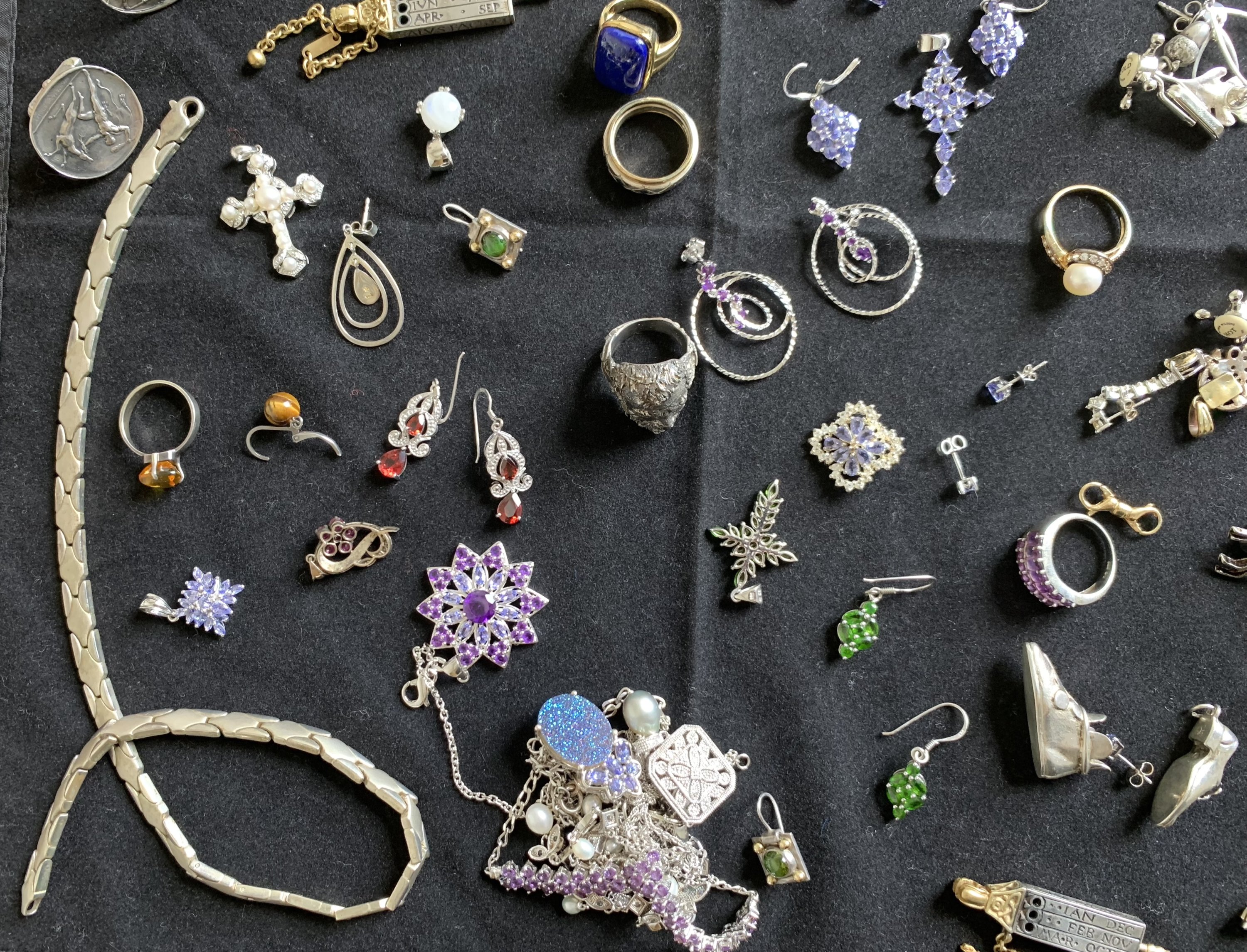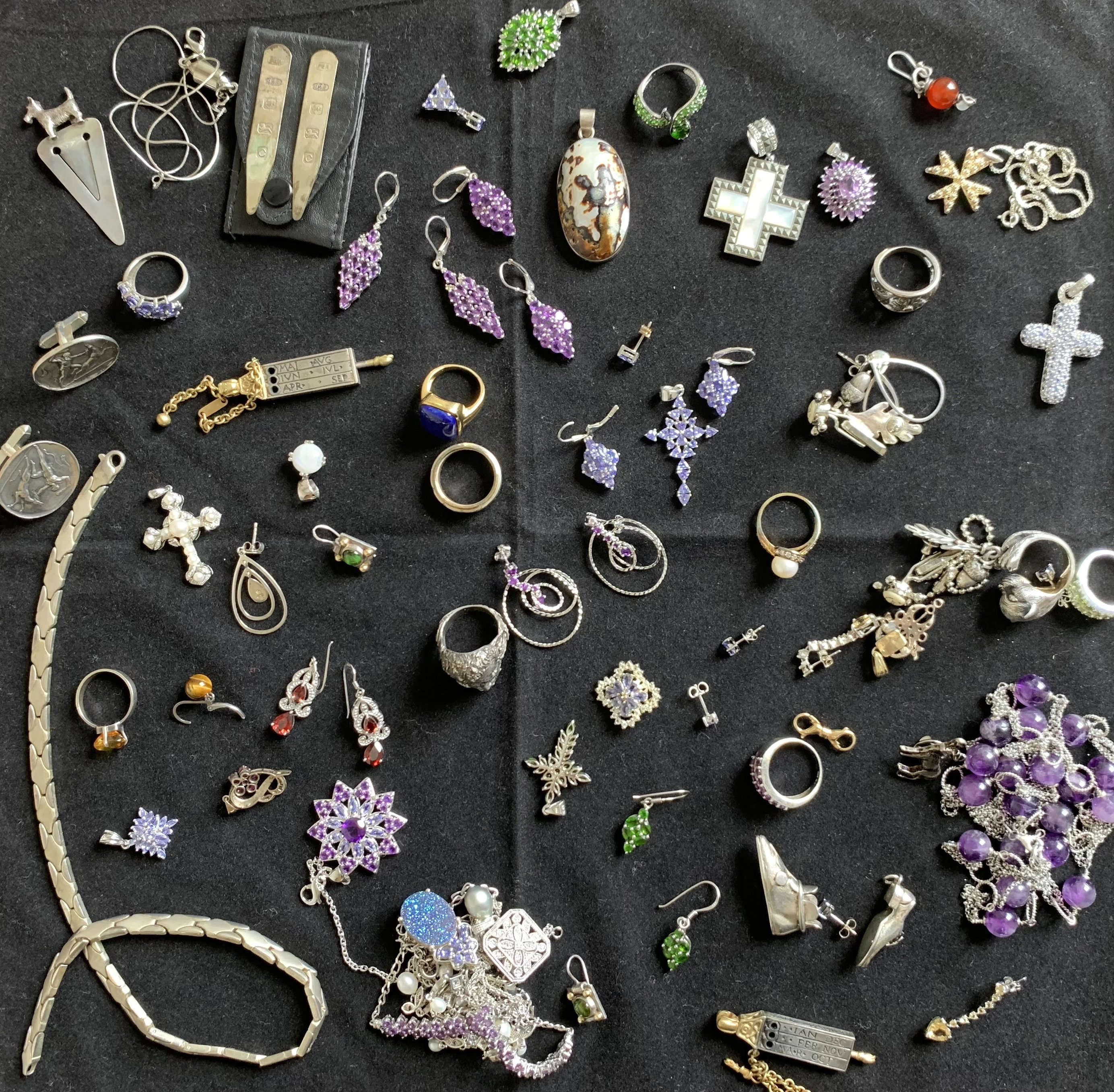 ornés de pierres fines et pierres d'imitation comprenant bagues, pendentifs, colliers, divers et débris.