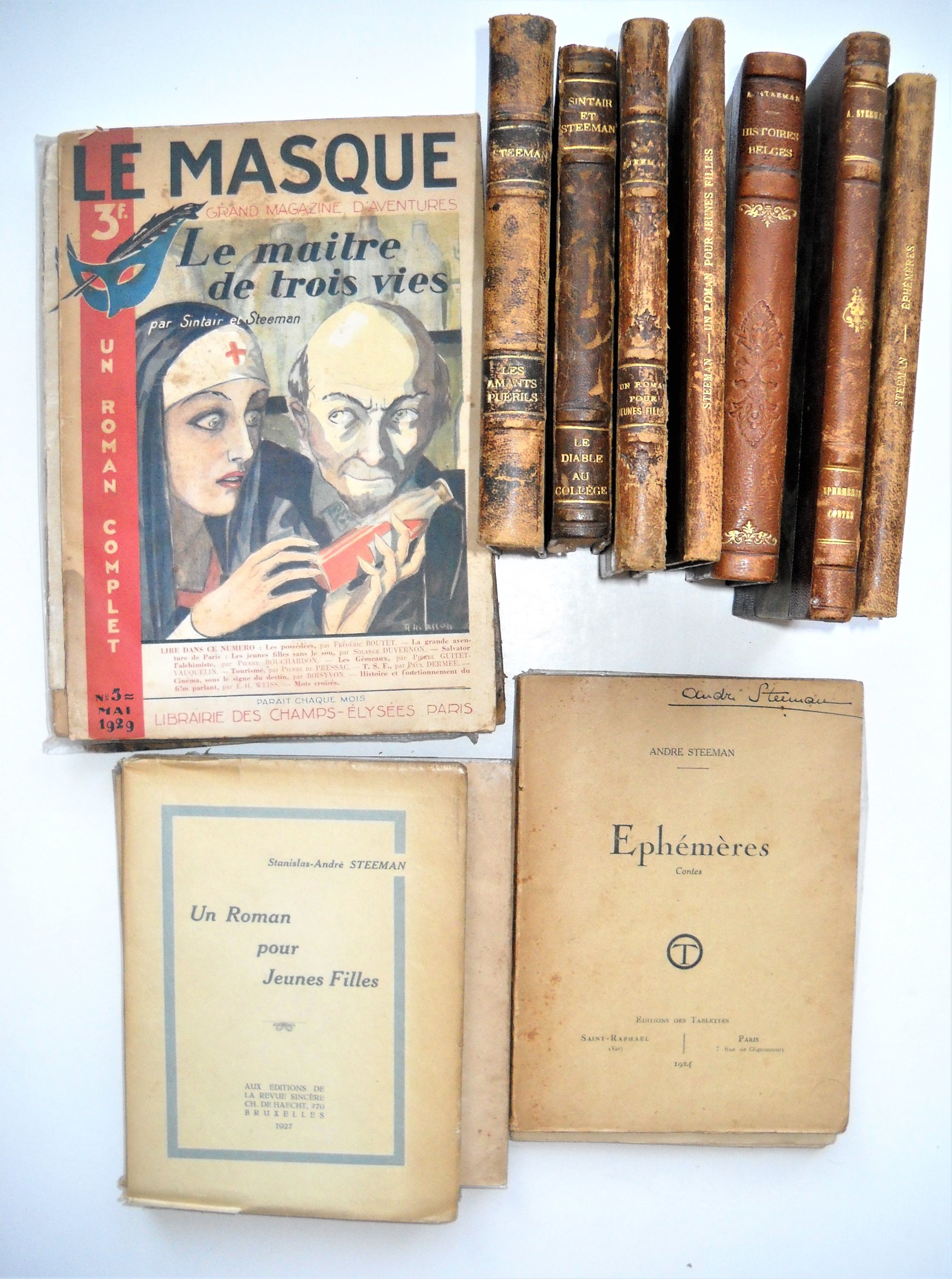« Le Mystère du zoo dAnvers », Paris, collection Le Masque, Librairie des Champs Elysées, 1928 (3 ex. dont un avec envoi autographe signé dAndré Steeman adressé à sa mère) ;