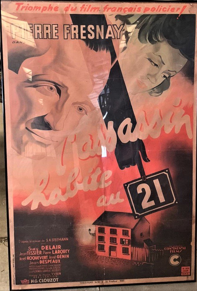 « LAssassin habite au 21 » par Georges-Henri Clouzot, 1942, 2 affiches, sous verre, 117 x 78 cm et 79 x 56,5 cm