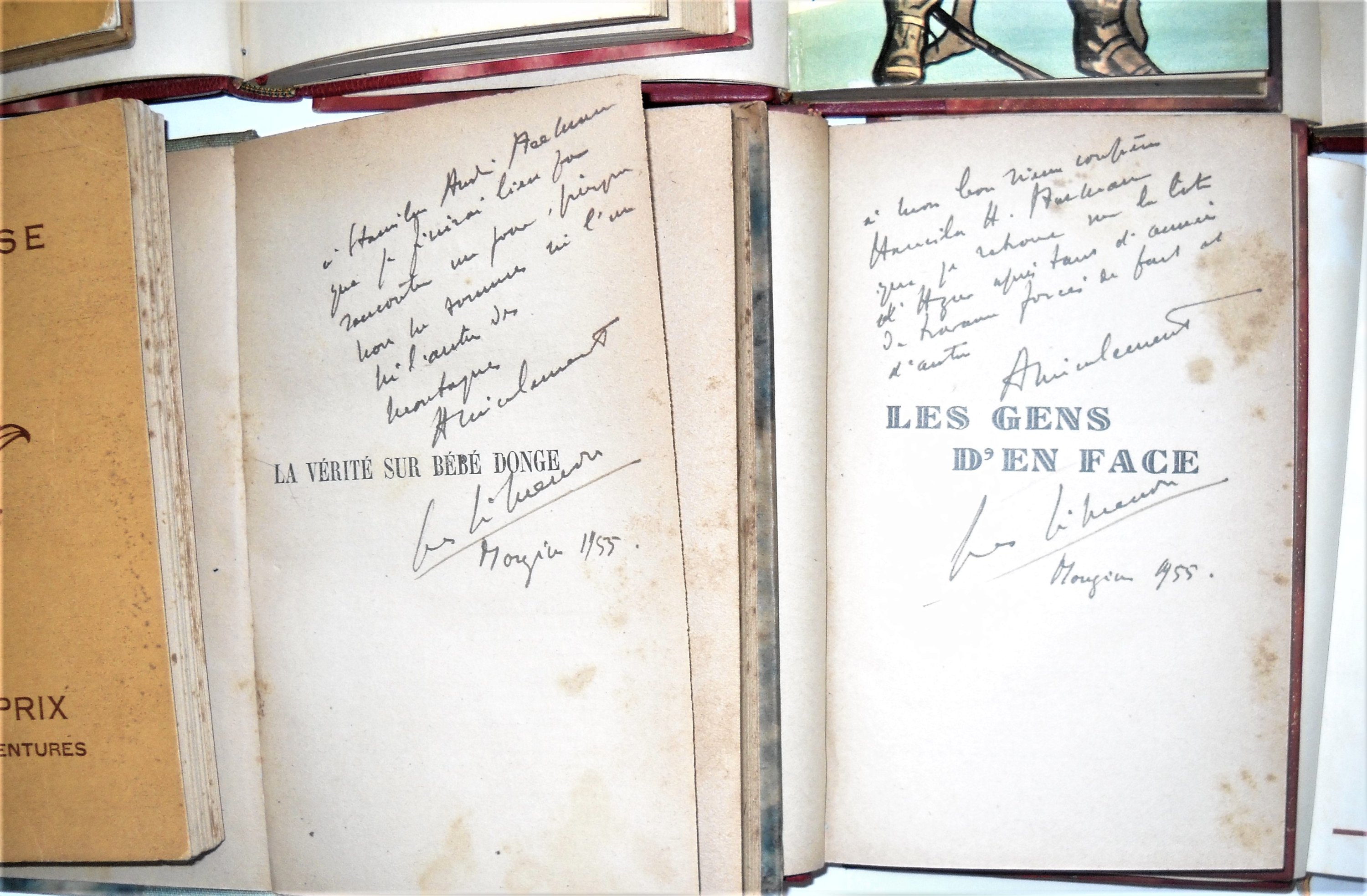 SIMENON Georges, 2 vol. : Les gens d’en face, Paris, Fayard, 1933, 251 pp. in-8, envoi manuscrit signé et daté ; La vérité sur bébé Donge, Paris, Nrf Gallimard, 1942, 218 pp. in-8, envoi manuscrit signé et daté ;