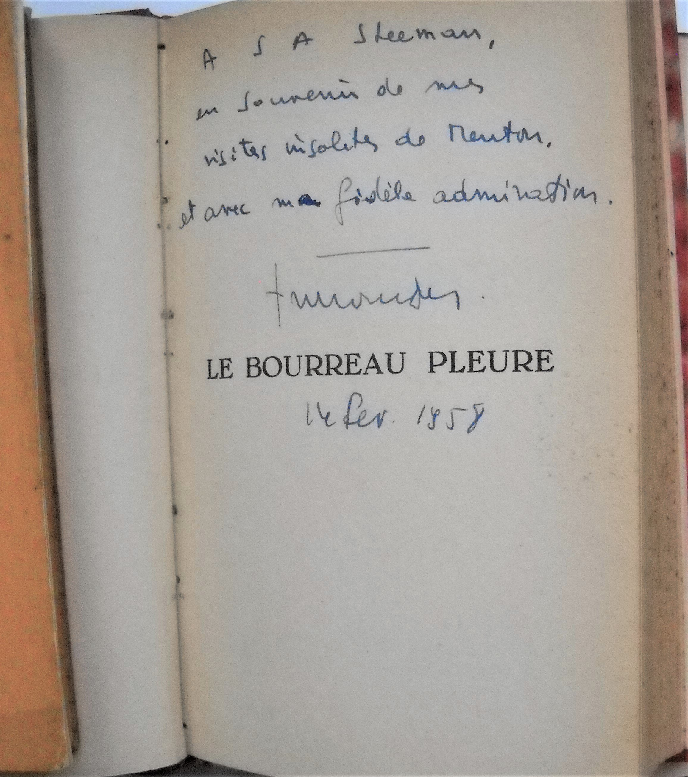 DARD Frédéric, Le bourreau pleure, Paris, Edit. Fleuve Noir, 1957, 219 pp. in-8, envoi manuscrit signé et daté ;