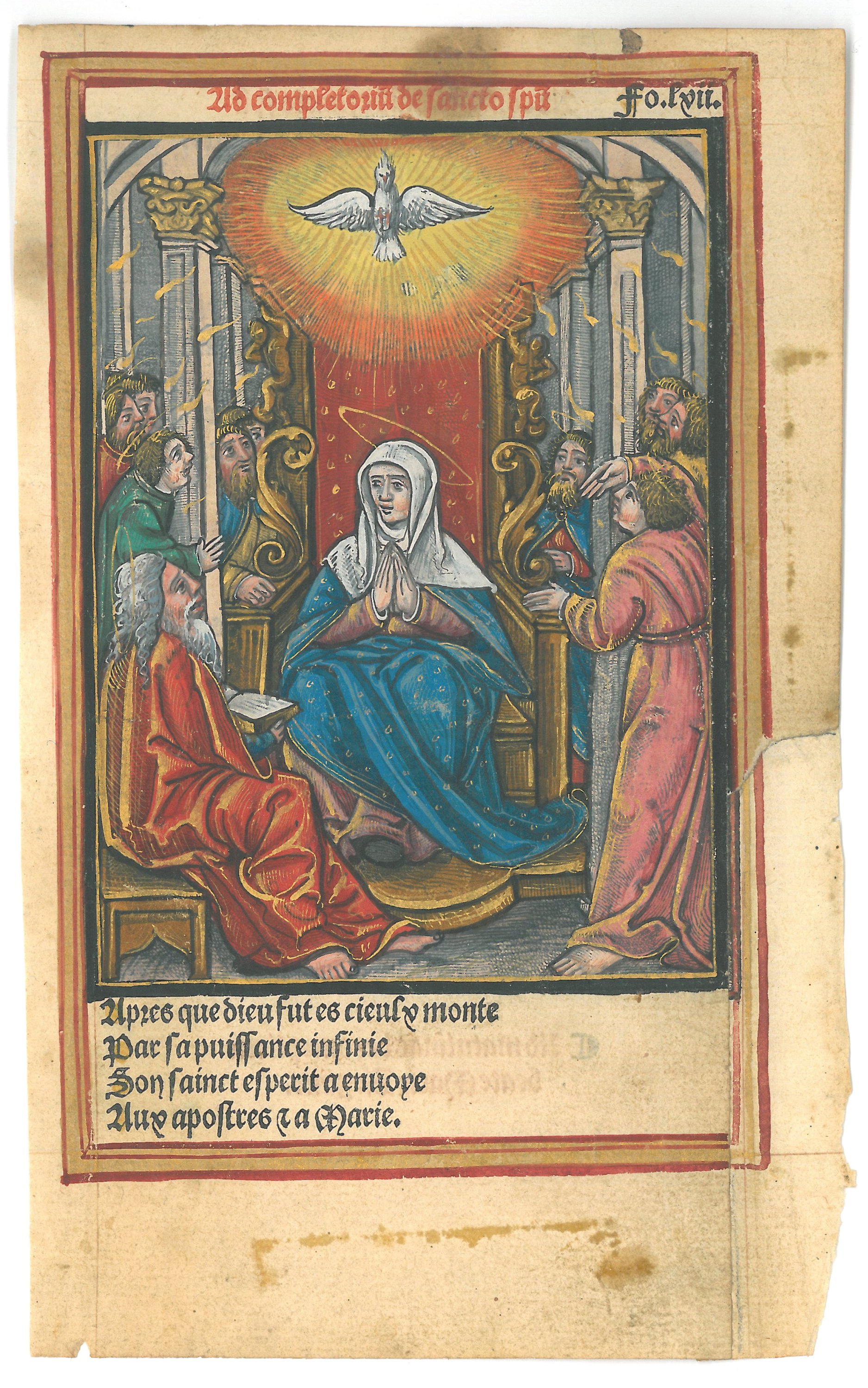 La descente de l'Esprit Saint, Extrait d'un livre d'heures imprimé. Haut. 15,9 Larg. 9,7 cm.