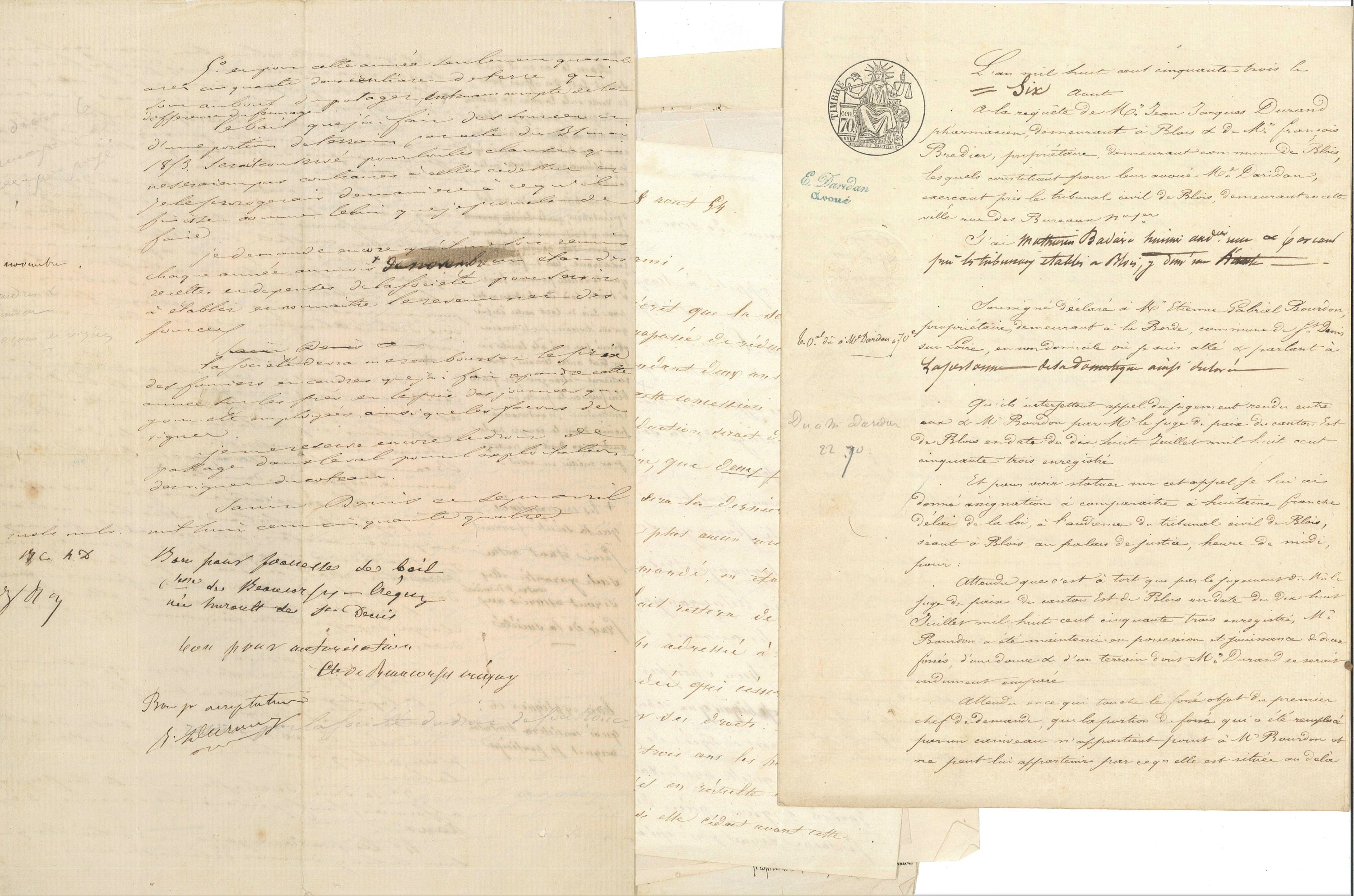Réunion de 30 pièces manuscrites, 1853-1866, relatives à lexploitation de « lEtablissement hydrothérapique et des eaux minérales de Saint Denis-Lez-Blois », dont 13 ratifications signées par les actionnaires de la société nouvellement fondée en 1854 (Elie Louis Roger Talleyrand de Périgord, prince de Chalais ; Edouard marquis de Beaucorps ; Auguste Henry vicomte de Maupas ; Guillaume Marie Paul Louis Hurault marquis de Vibraye ; Paul Andral avocat ; Edouard Walsh vicomte ; Joseph de Riquier comte de Caraman prince de Chimay ; Louis Auguste Marie Johanne de la Carre marquis de Saumery ; baron Louis Asselin ; Anataole Christophe Antoine Herry vicomte de Maupas