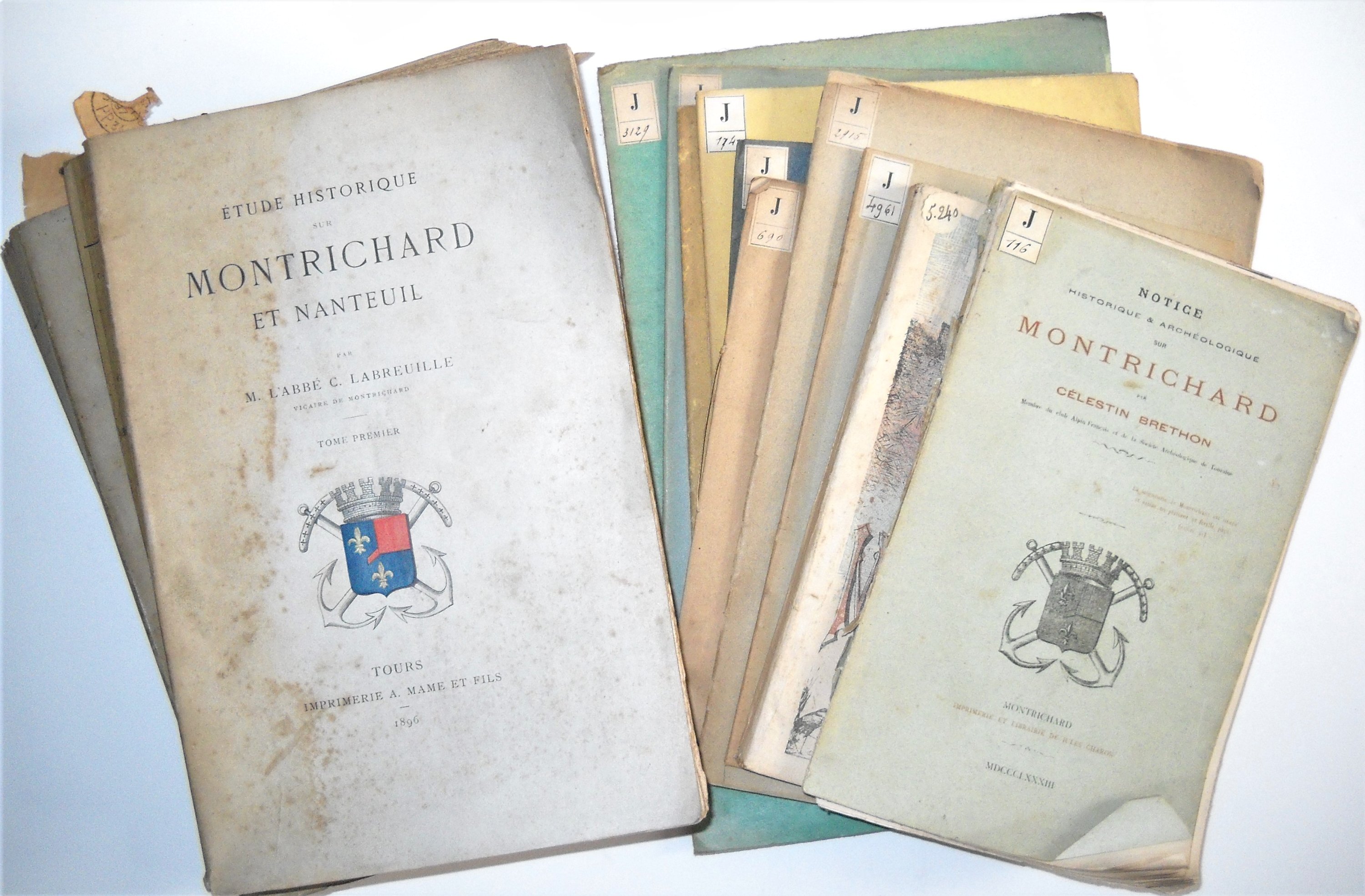 • Abbé Labreuille, Etude historique sur Montrichard et Nanteuil, 2 tomes, Tours, Mame et fils, 1896, br. in-4, 368 et 383 pp., qqs rousseurs et couv. usées ;