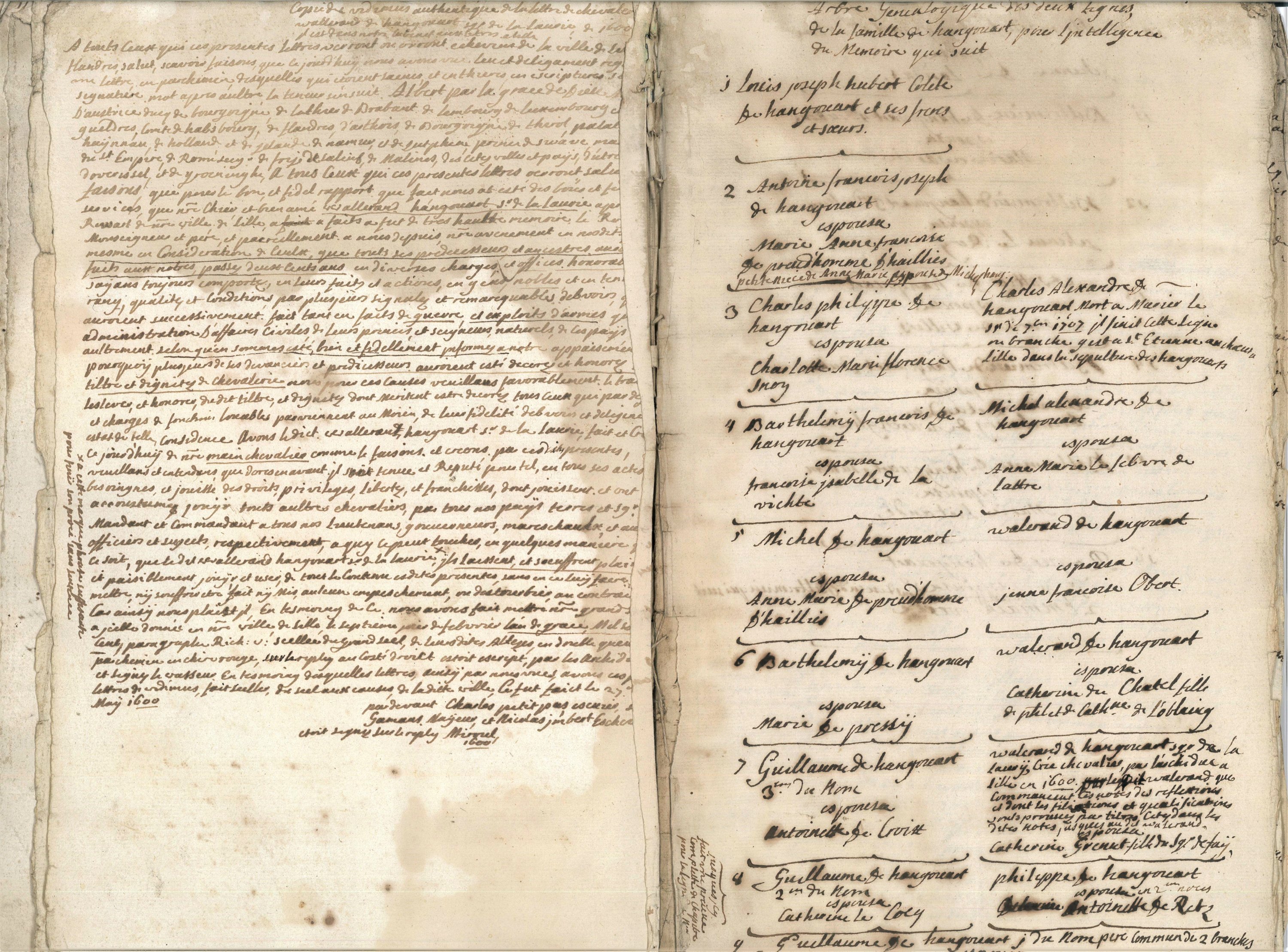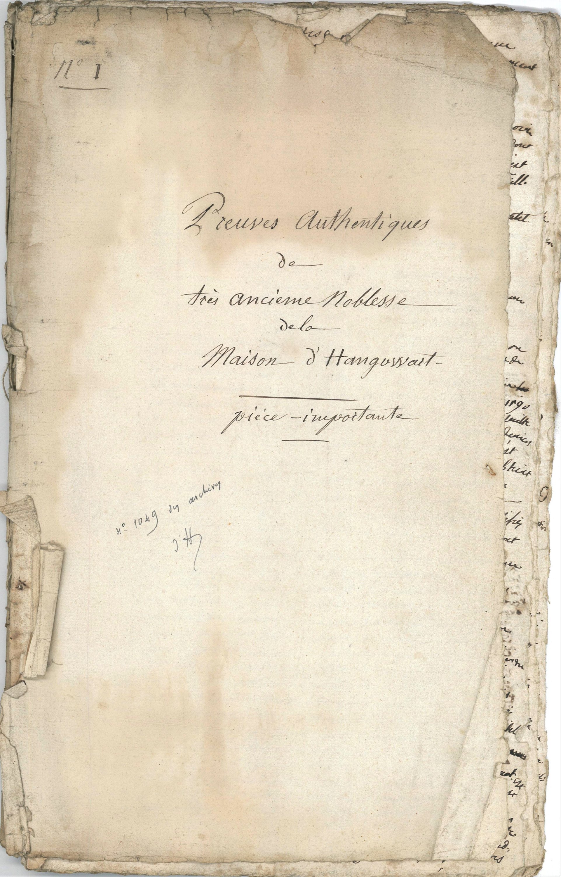 « Preuves authentiques de la haute noblesse de la maison dHangouwart », 18e siècle, 63 pp. in-4 ;