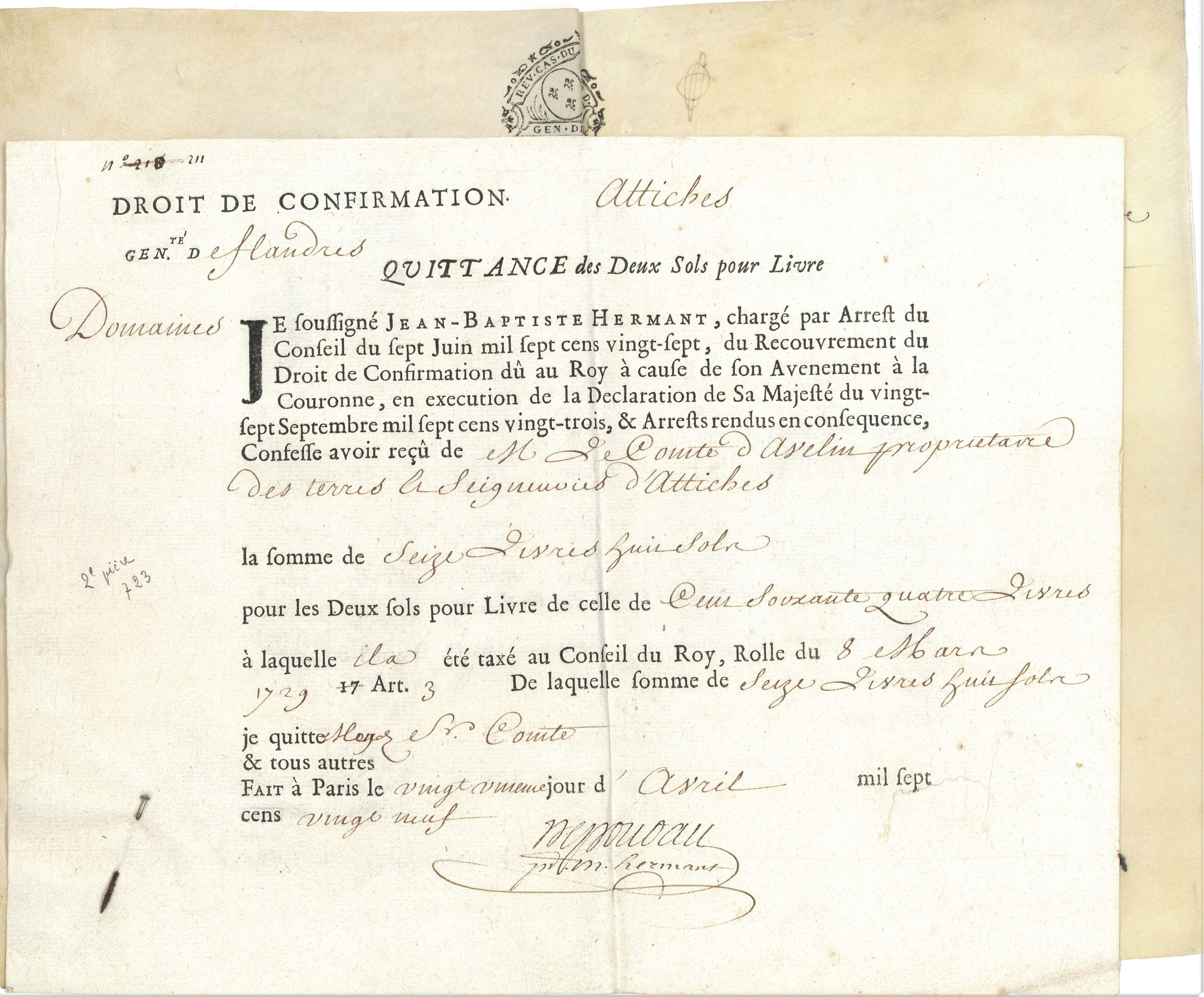 ![Lot 321 - [Nord - Flandre]Seigneurie d'Attiches, près de LilleRéunion de 13 pièces... [Nord - Flandre]Seigneurie d'Attiches, près de LilleRéunion de 13 pièces...](<150:ddoc-1253604-fa7e6ea42e566af51f94557ec794e275-321_3.jpg, <480:ddoc-1253605-2be93c5a88375aafa96bcfc4645fc78f-321_3.jpg, <640:ddoc-1253606-3c88a95d0d13d80a17f5a494e00b8c39-321_3.jpg, <900:ddoc-1253607-7f5ed31428bd1ebbbee1a6d4eee08d59-321_3.jpg, <1200:ddoc-1253608-61f783e38b53ed92f32d1c738c47f5ee-321_3.jpg, >1200:ddoc-1253603-fd6418a9c3b3b8228b7e25d8e7f47644-321_3.jpg)