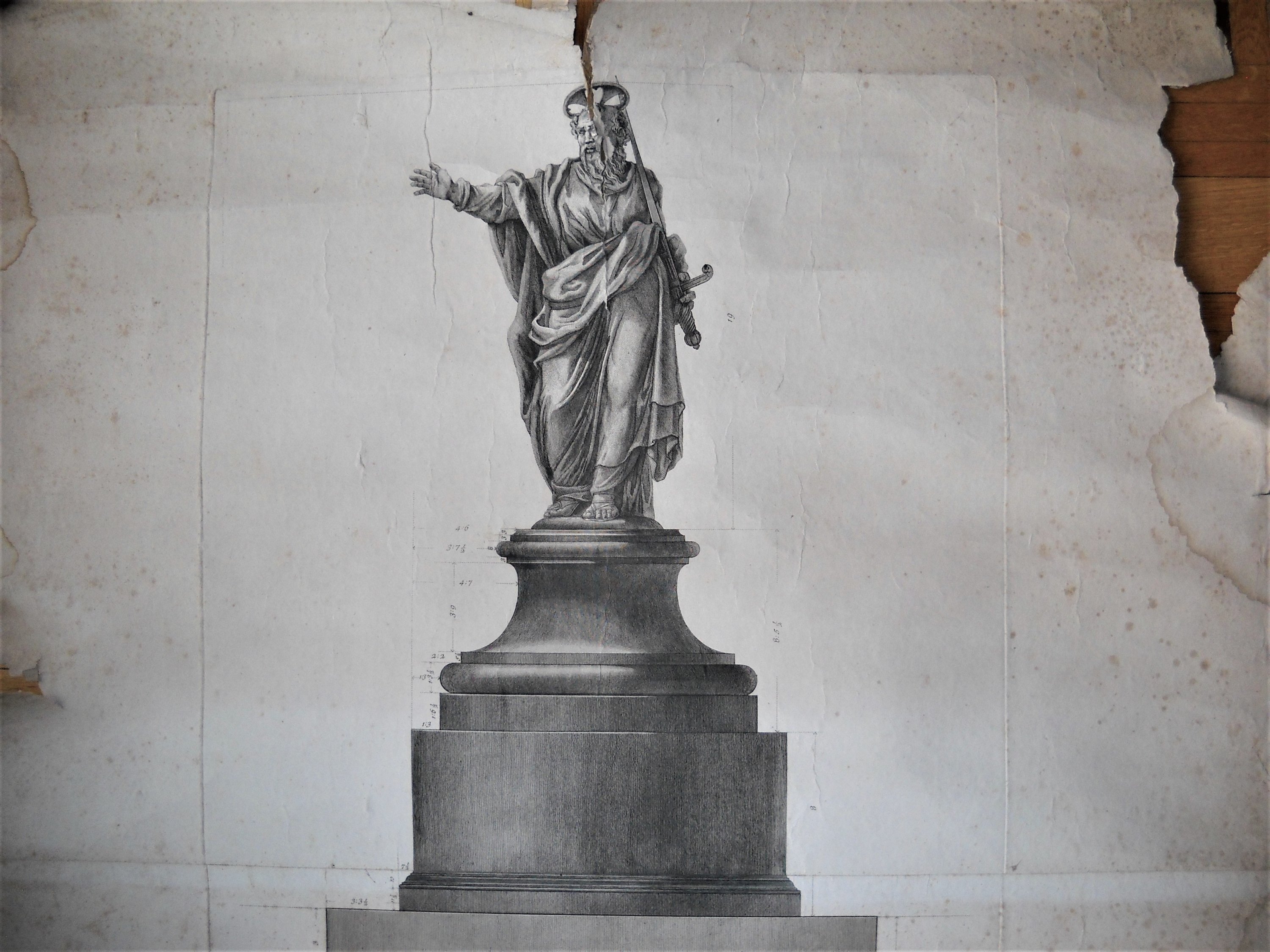 « Veduta del Prospetto principale della colonna Antonina [Vue de lélévation principale de la colonne Antonine ] », vers 1774-1779", grande planche gravée à l'eau-forte, enroulée et composée de 6 feuilles de papier velin jointes, signée en bas à droite « Cav. Piranesi F. » (Cav. pour cavaliere, Piranèse ayant été fait chevalier par le pape Clément XIII en 1767), avec légendes, échelles et cotes des hauteurs.