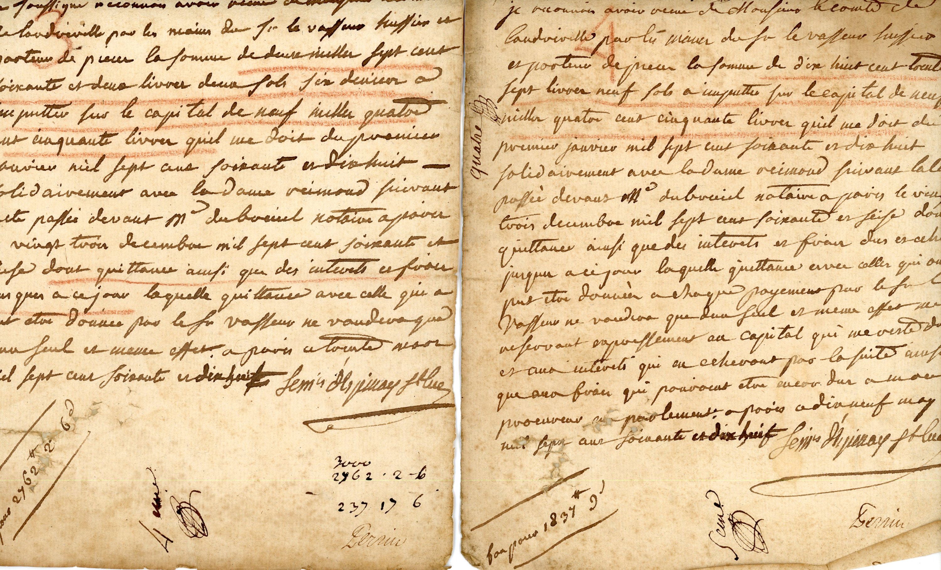 2 P.A.S., 19 mai 1778, Adrien Joseph marquis dEspinay-Saint-Luc, aide de camp du maréchal de Soubise, maréchal de camp ; quittances.