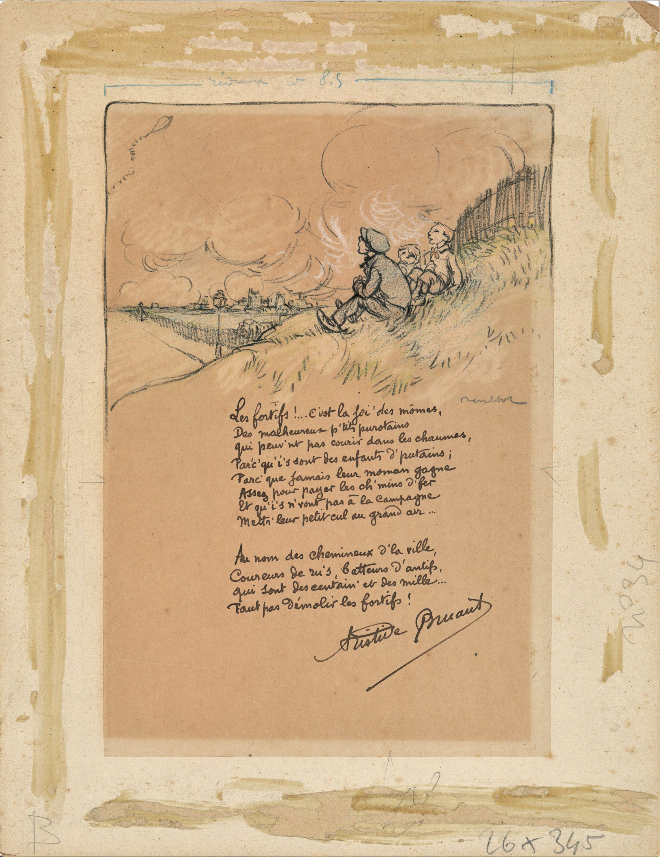 « Pour les fortifs », extrait de la monographie éditée en 1889-1895 « Dans la rue : chansons et monologues » (partie de la chanson « Pour les Fortifs » publiée dans le volume 2)