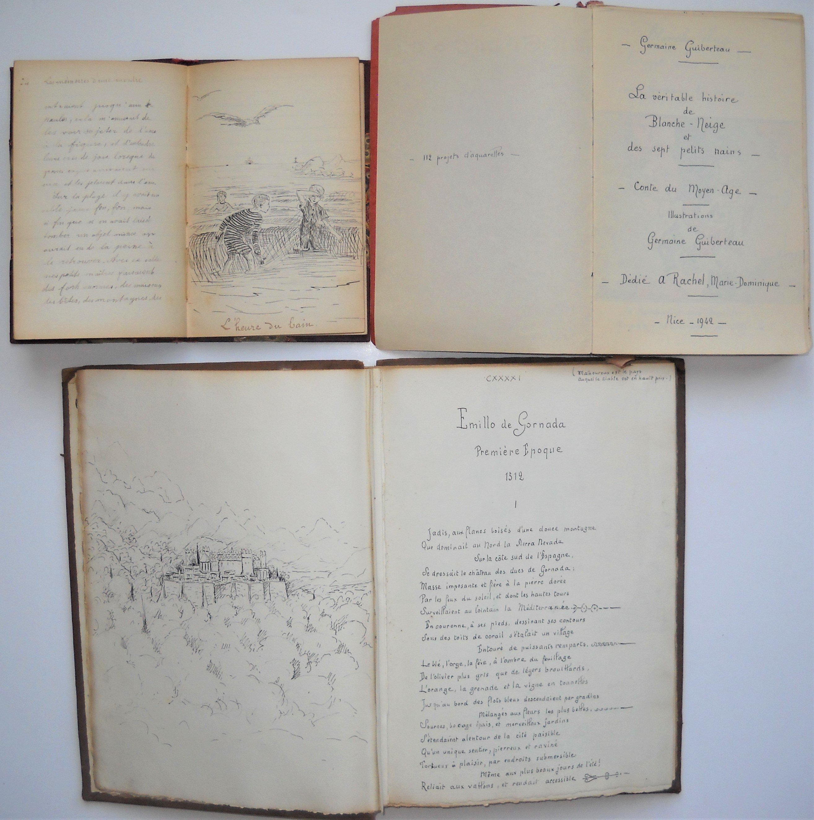 3 manuscrits inédits de contes imaginés et écrits par Germaine Guiberteau