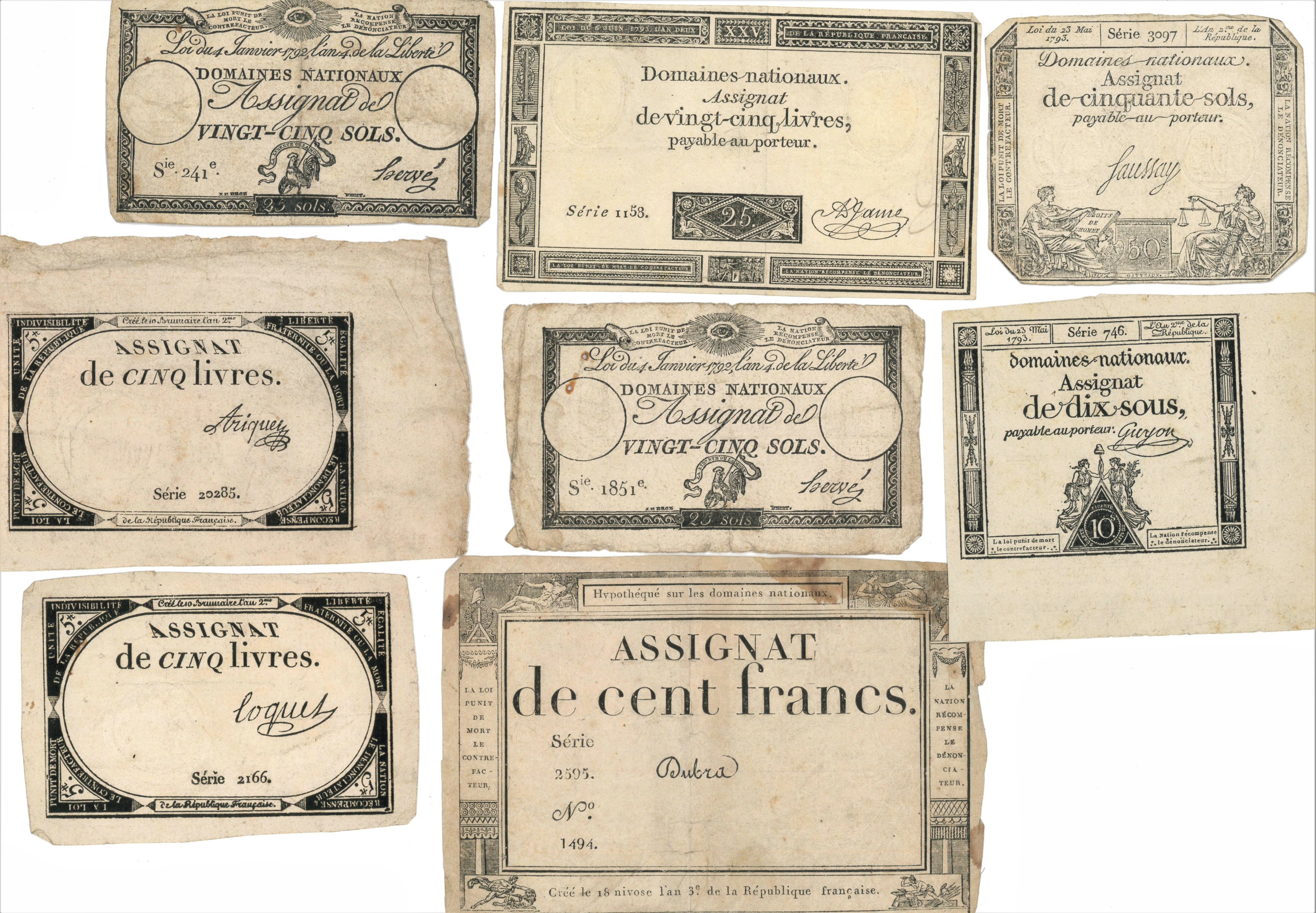 8 assignats révolutionnaires ;