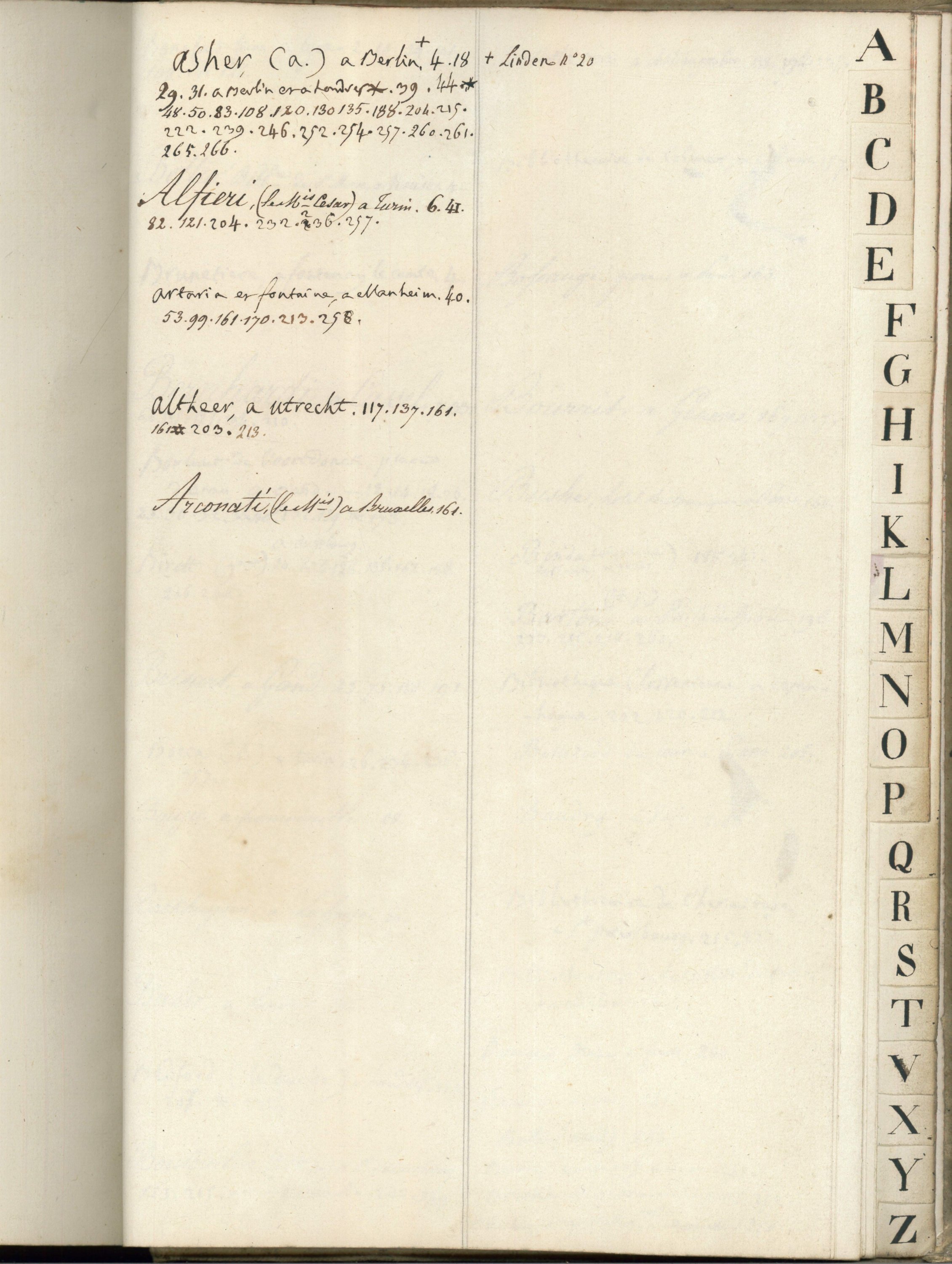 Dont maisons de libraires : August Gottlob Weigel à Leipzig, Payne et Foss à Londres, Paul Antoine Tosi à Milan, Asher à Berlin, Iskender à Constantinople, Luchtmans à Leyde ; bibliophiles, bibliothécaires et hommes de lettres : Kiriakow à Odessa, Marquis César Alfieri à Turin, docteur Charles Bernhardi bibliothécaire de la bibliothèque ducale de Cassel, marquis Georges Trilvazio à Milan, Barthélémy Kopitar conservateur de la bibliothèque impériale de Vienne, etc.