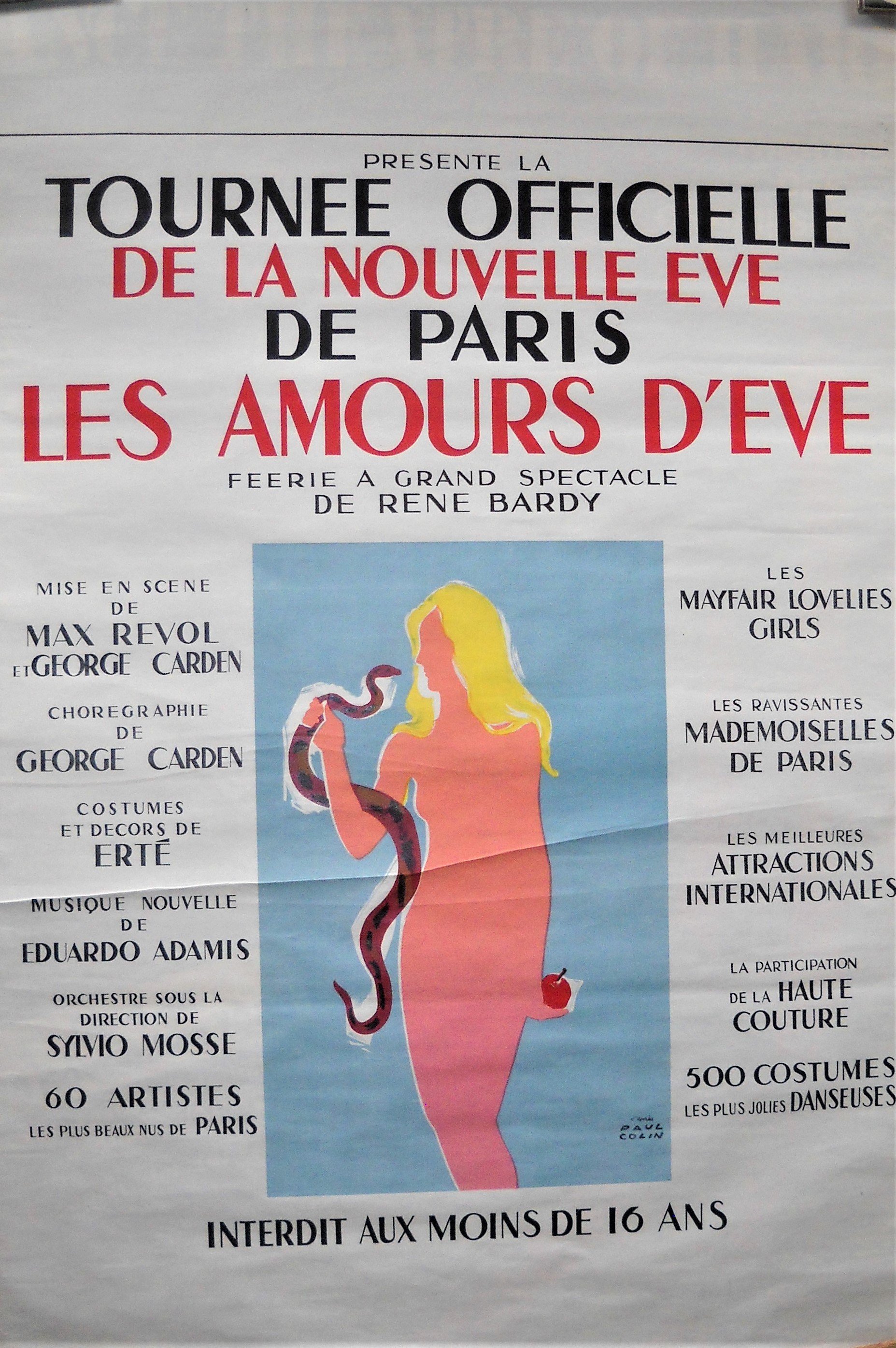 2 affiches de théâtre : « Dance Theater of Harlem / Théâtre des Champs-Elysées ». 1985. Non entoilée, 150 x 100 cm ; « Tournée Officielle de la Nouvelle Eve de Paris. Les amours d'Eve. Féérie à grand spectacle de René Bardy. » Non entoilée, 120 x 80 cm.