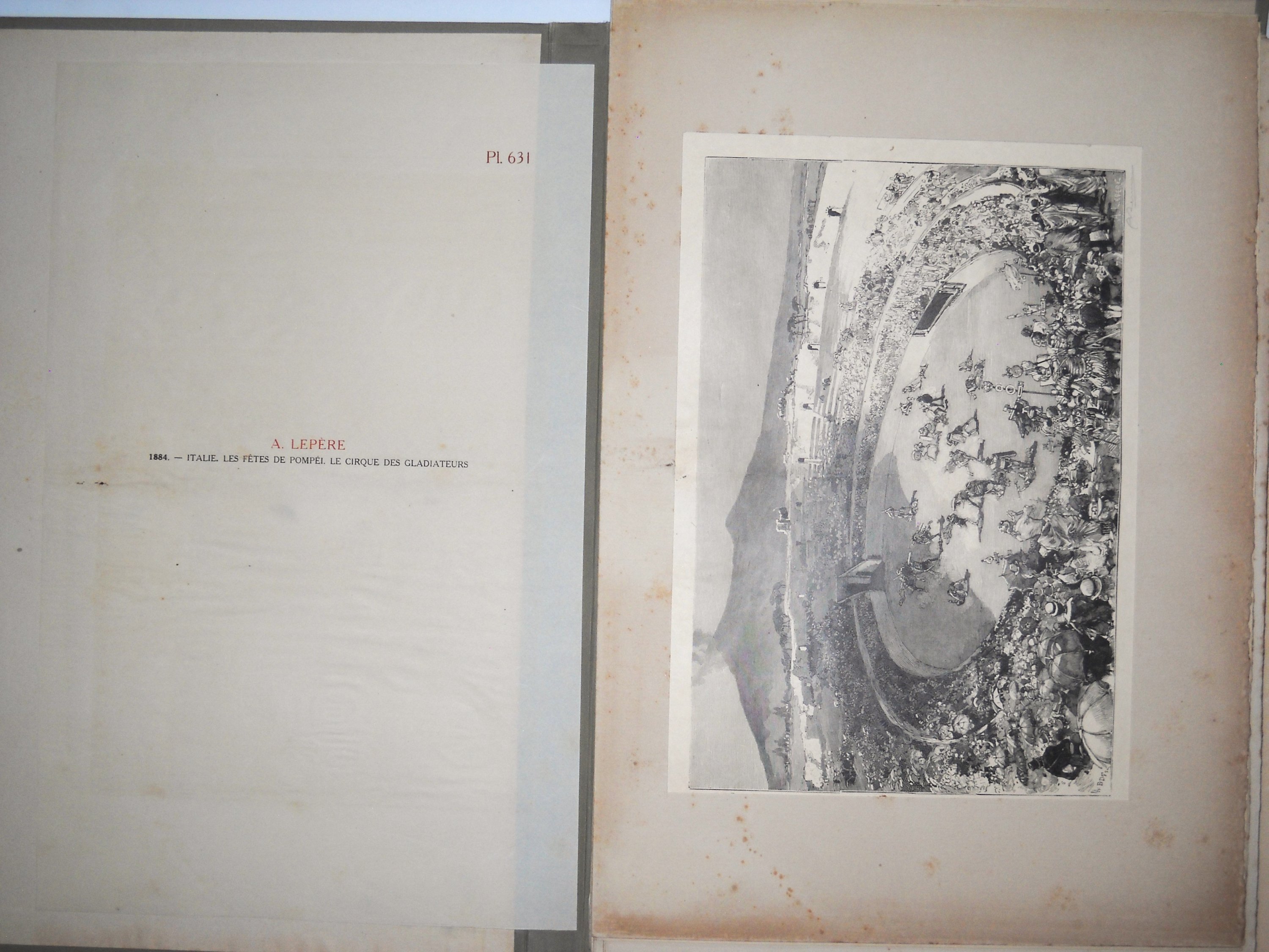 Les « Bois » du Monde Illustré. Notice inédite de Henri Lavedan. Paris, Au Monde illustré, s. d. (1916-). In-folio, chemises éditeur avec aplat doré sur fond marron sur le plat. Bon état (mouillures). Suite de pl. numérotées de 541 à 660 (chemises XIV à XVI) auxquelles sont jointes 11 pl. in-plano (sur 24) conservées dans la chemise XX « D. Vierge et A. Lepère ».