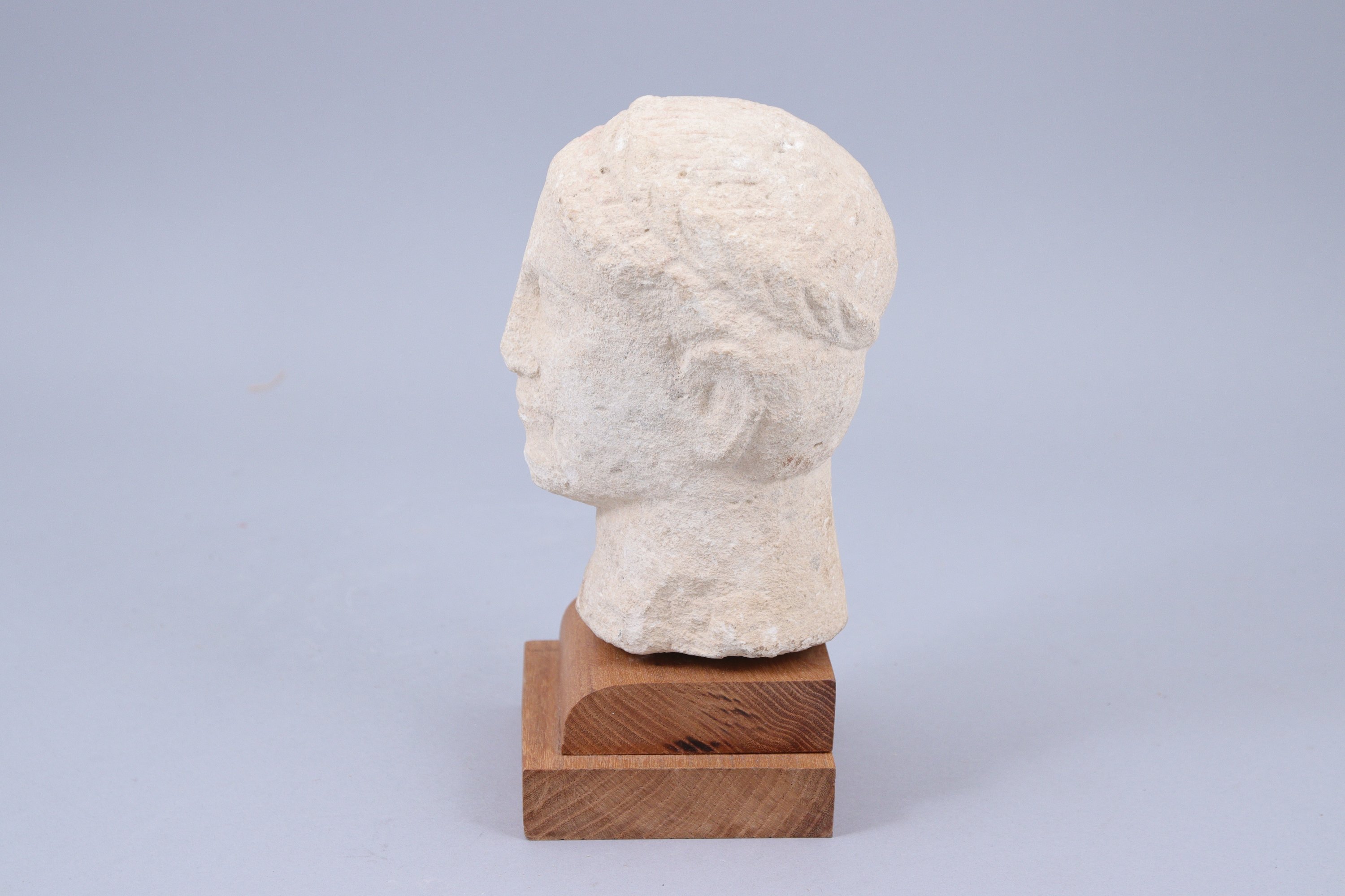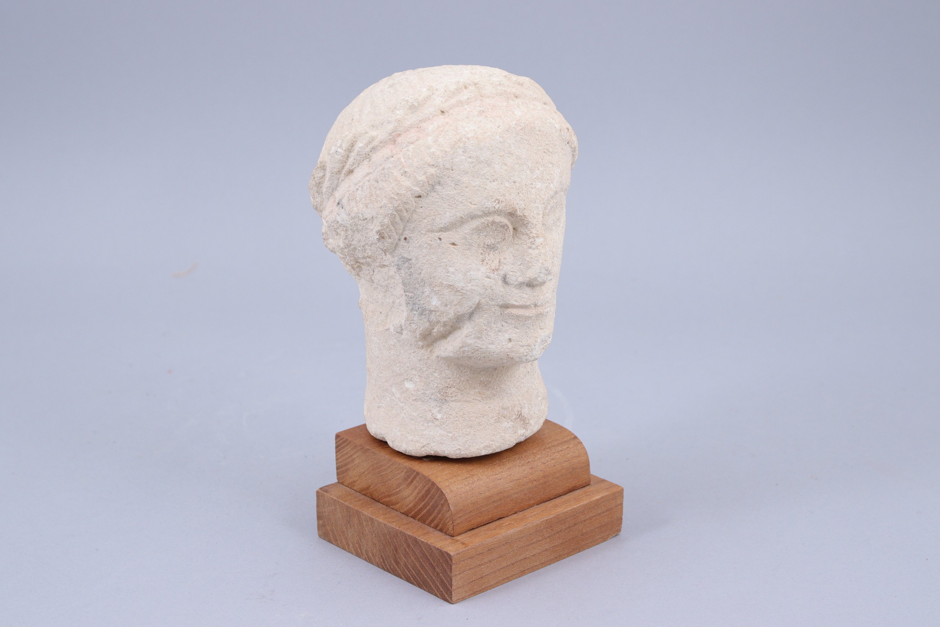 coiffée dune couronne végétale. Traces de pigments rouges sur la couronne.