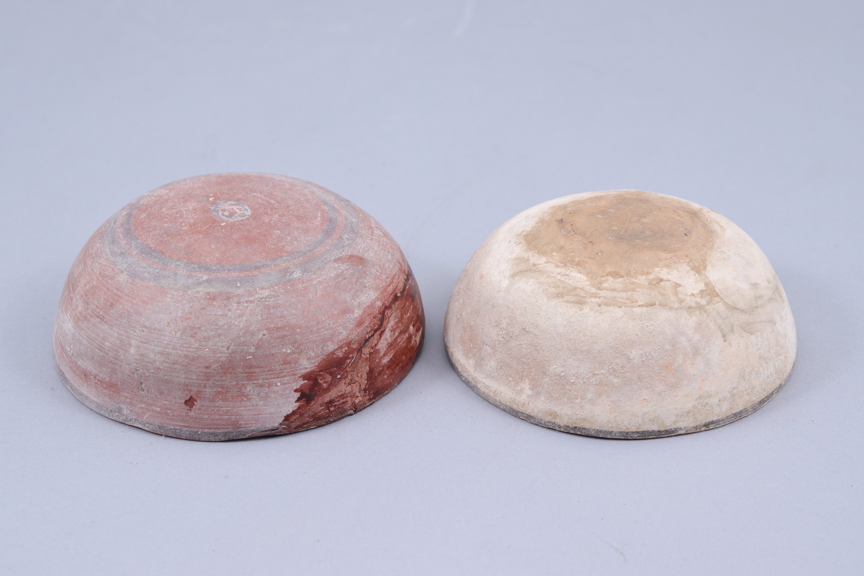 Joints : Chypre, Âge du Fer (750-600 av. J.-C.). Deux bols à décor de cercles concentriques noirs. Diam. 13 et 12,5 cm. (importantes restaurations)