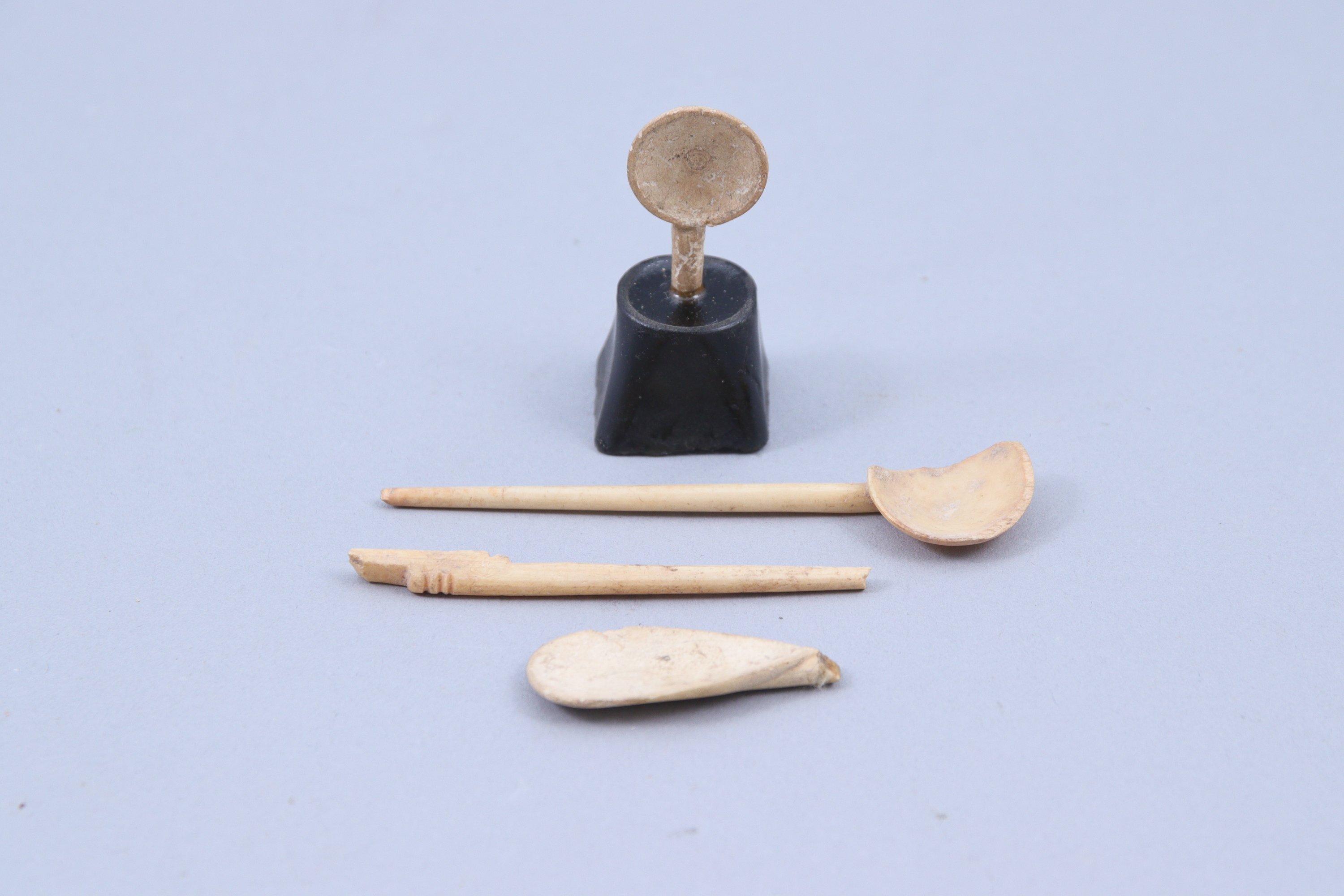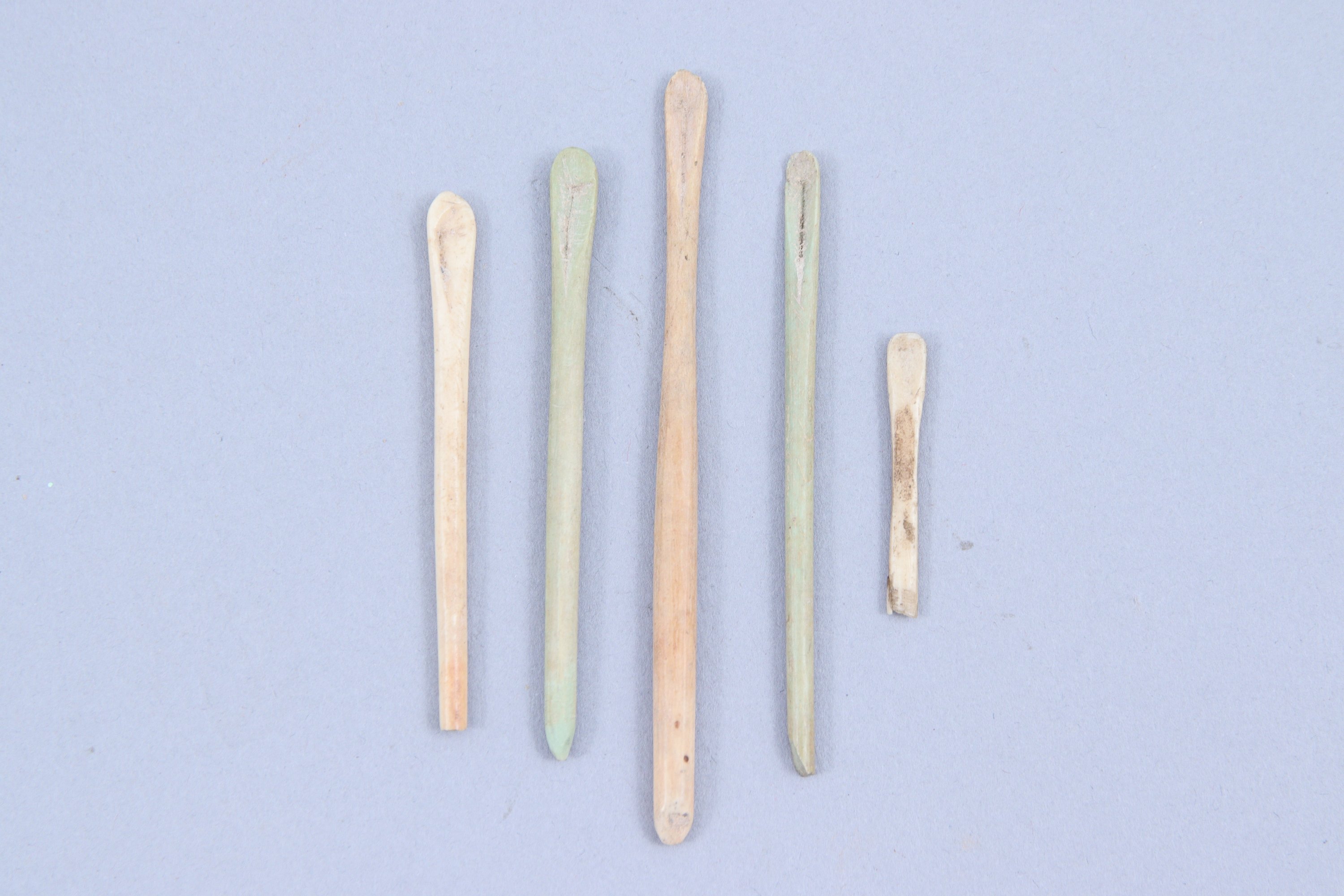 - 5 spatules creuses à usage cosmétique. Long. max. 9 cm. (manques)