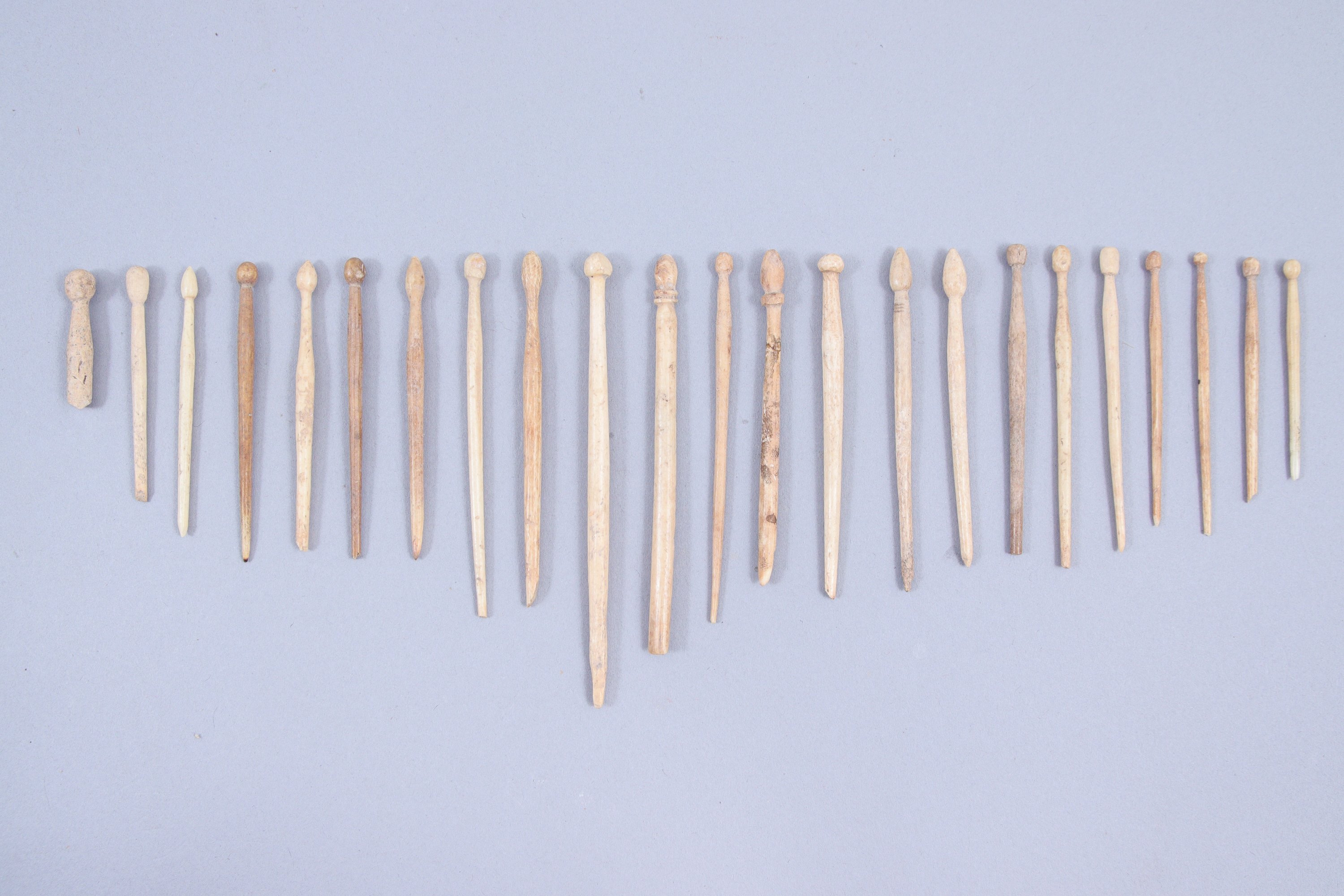 - 23 épingles romaines à tête globulaire. Long. max. 11 cm. (accidents et manques)