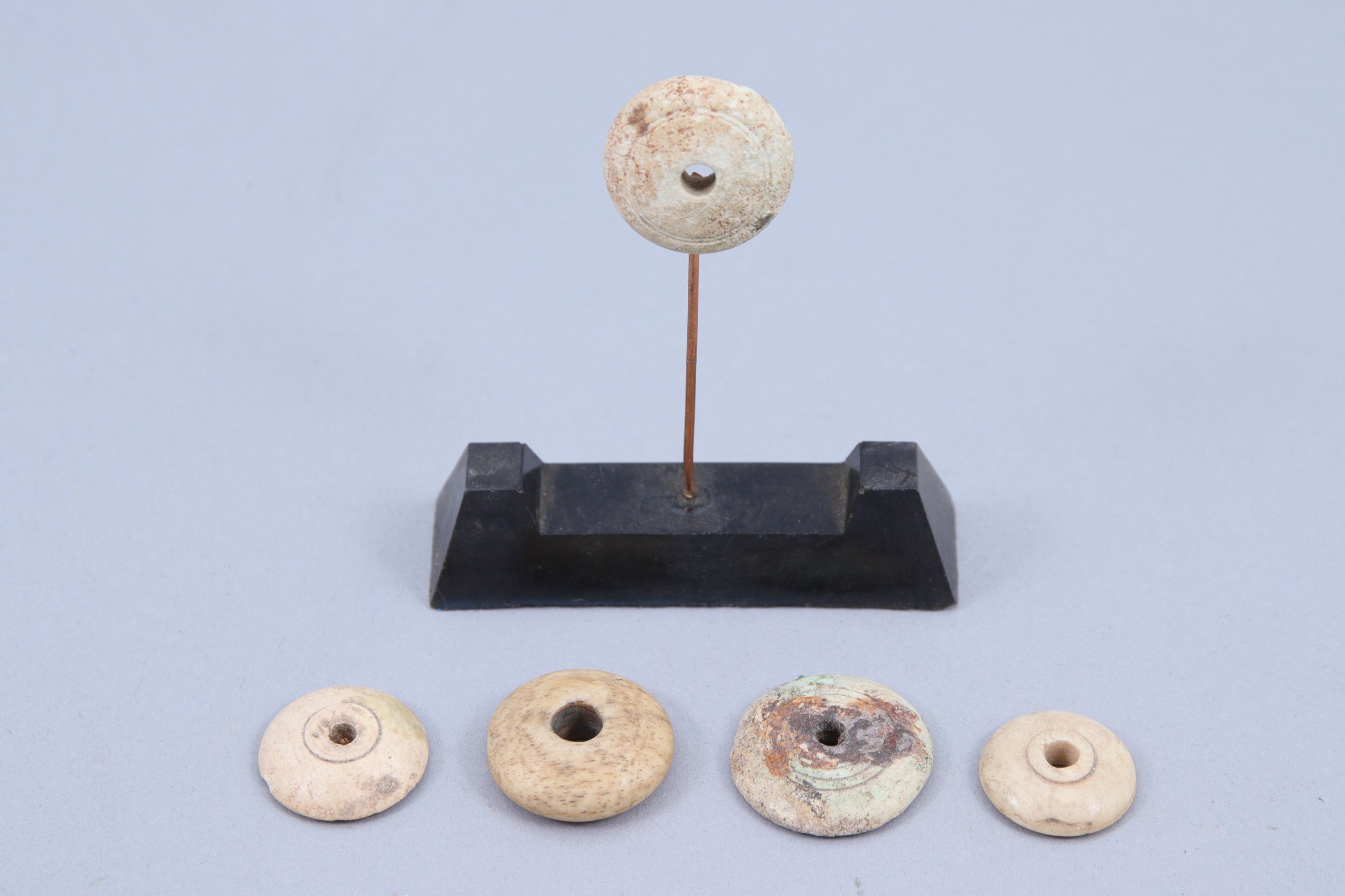 - 5 fusaïoles romaines en os. Diam. max. 2,5 cm.