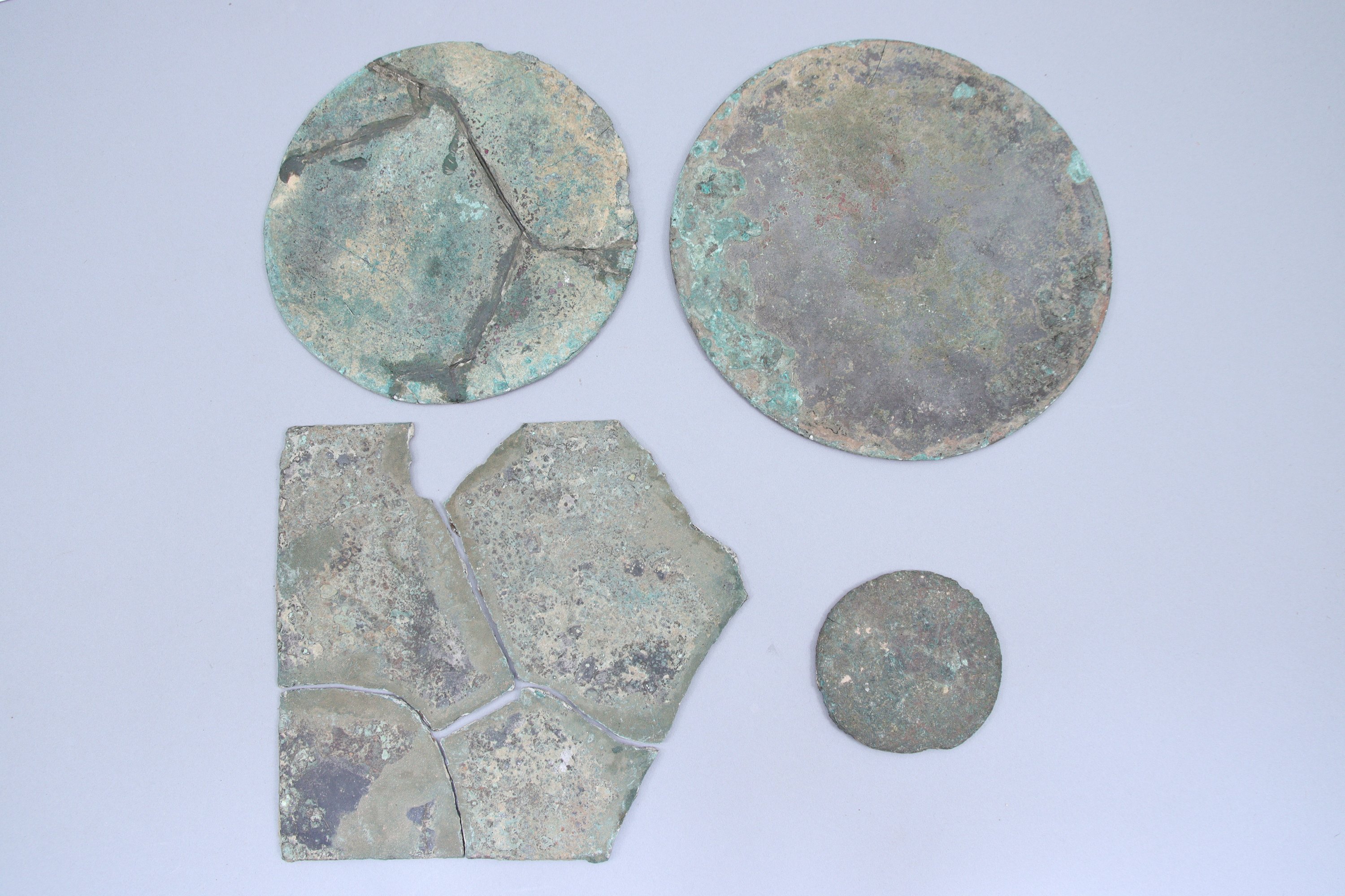 en bronze dont un quadrangulaire (manques) et trois circulaires (lun restauré).