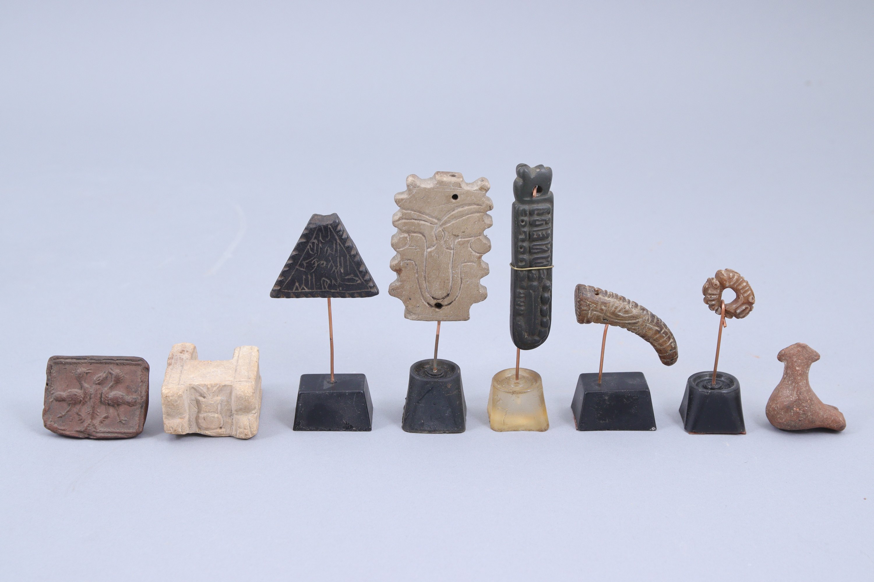 Curieux ensemble de huit amulettes et objets ethniques en différents matériaux