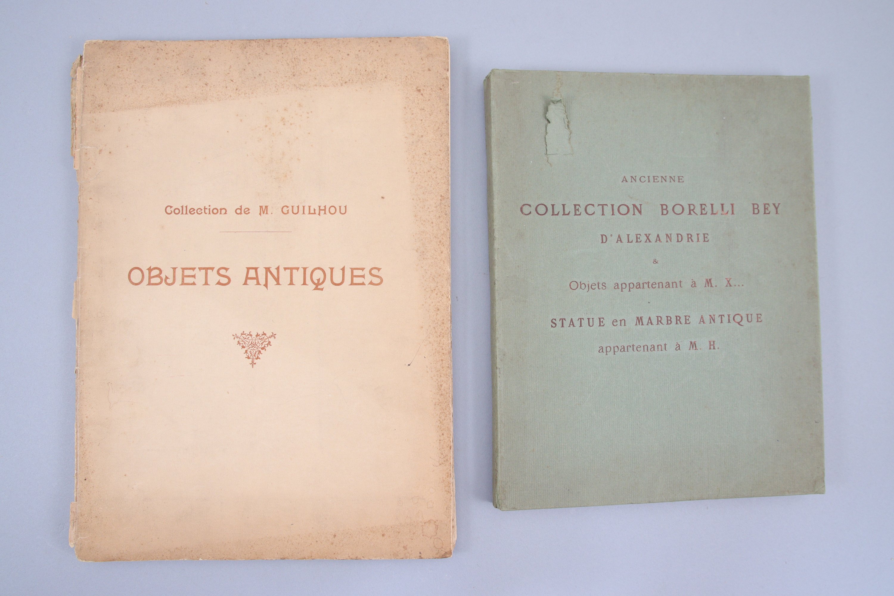 - Catalogue de vente darchéologie, 16-18 mars 1905 : Collection de M. Guilhou, objets antiques. Experts Sambon et Canessa. (reliure cassée, couverture insolée et défraichie. Intérieur propre malgré quelques rousseurs. Indications de prix au crayon).