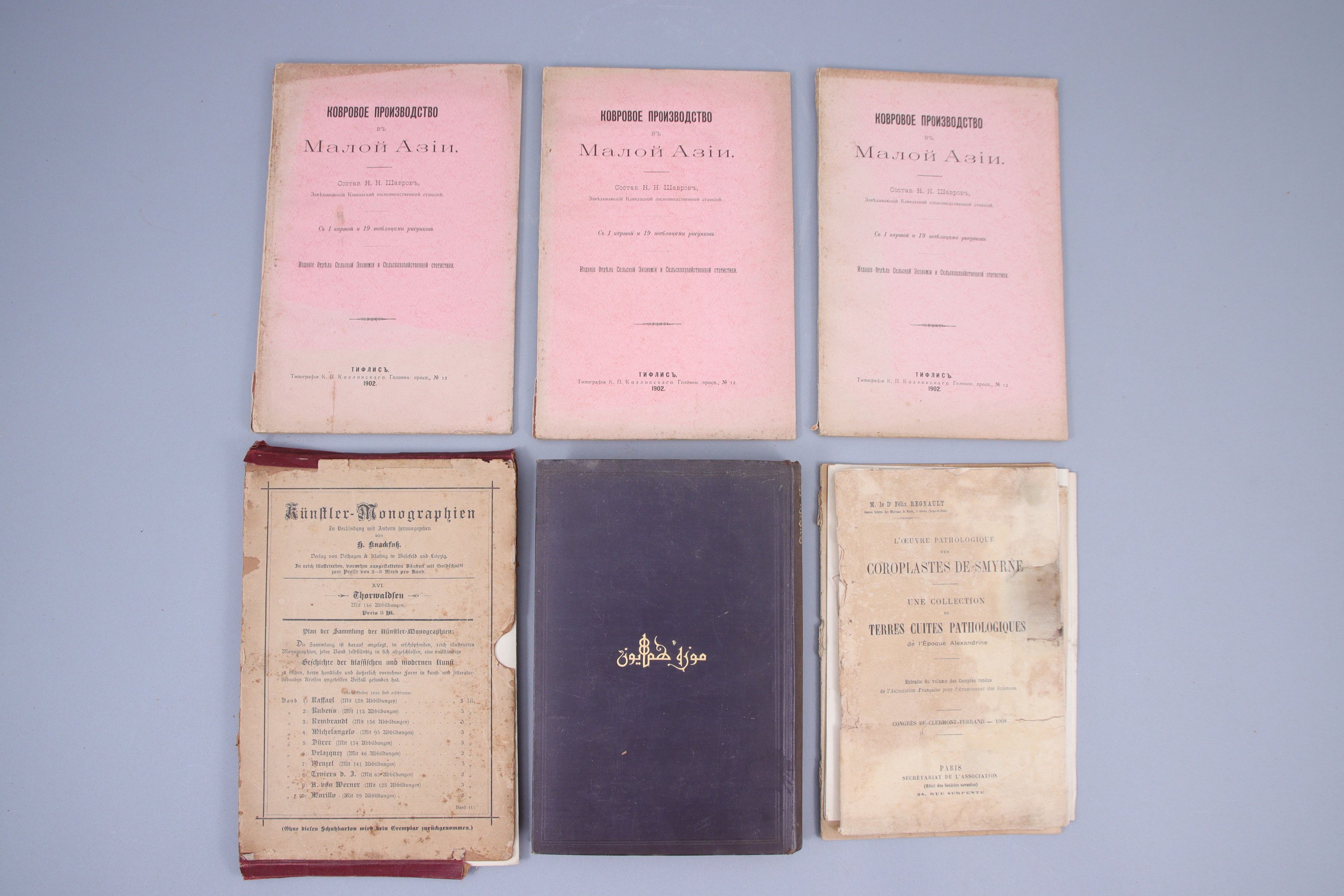 Joints : Six ouvrages en allemand, russe (sur les tapis) et turc ottoman (catalogue de numismatique islamique) et quelques tirés à part, certains relatifs aux travaux de Paul Gaudin.