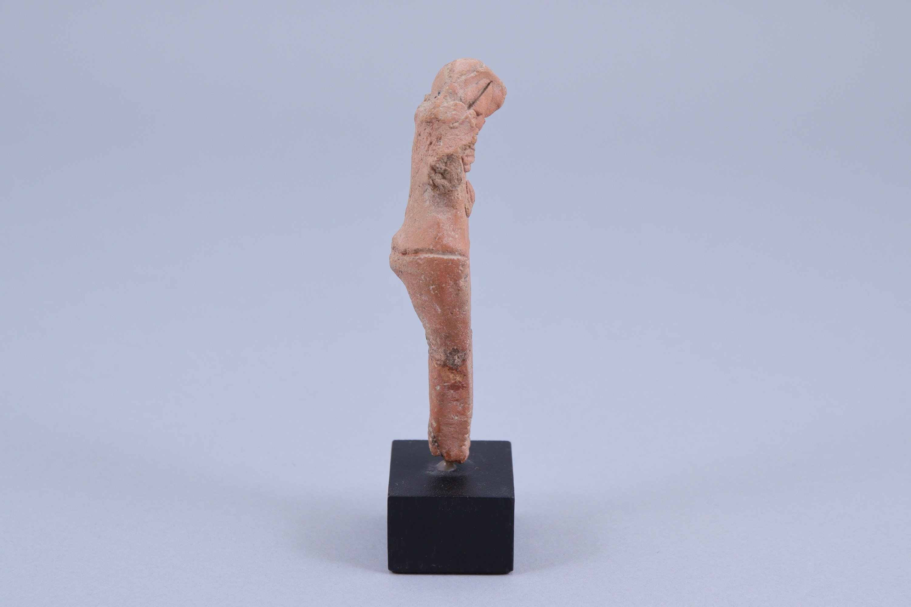 en terre cuite, avec un nez pincé et des yeux en forme de grains de café.